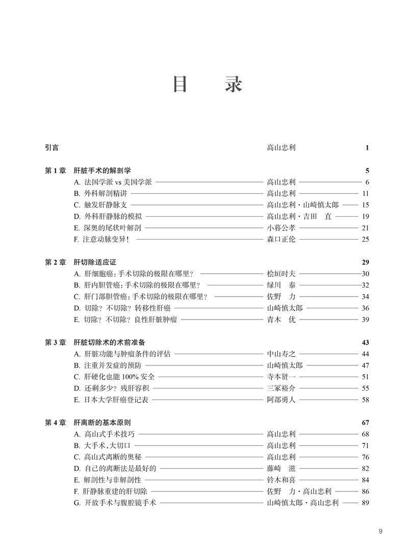 高山忠利教授是幕内雅敏教授大弟子,多年在日本肝切除数量名列前茅,积累了大量的临床实践经验,在幕内术式的基础上更加体现了细致与创新,创立了高山风格。本书以高山教授从事肝脏外科30多年的丰富经验为基础,全面介绍了他的手术技巧,除采用简洁的文字描述外,还绘制了大量简洁直观的示意图,并辅以术中彩色照片加以说明,图文并茂,实用性强。许多复杂的手术操作通过术中照片及示意图一一再现,使读者仿佛亲临手术现场一般倍感真实。本书最大的特点就是图文并茂,用大量的绘图与手术实况照片,便于学习和模仿,生动展现了世界知名的肝脏外科手术技巧。