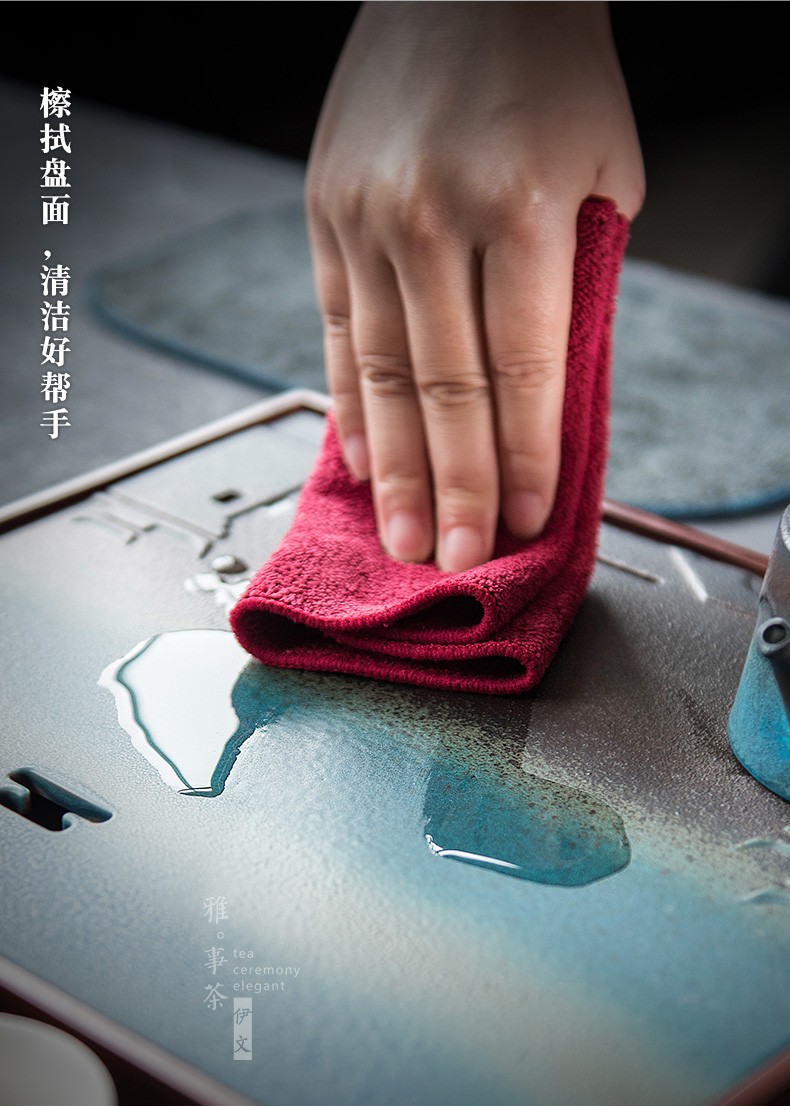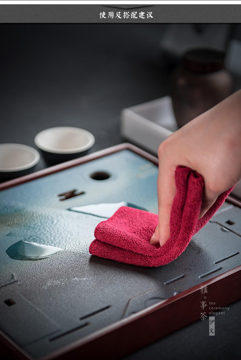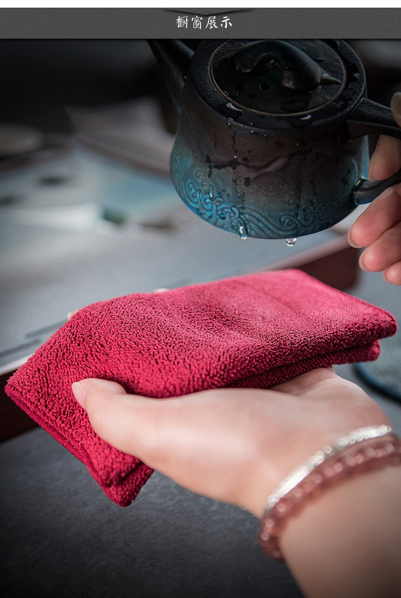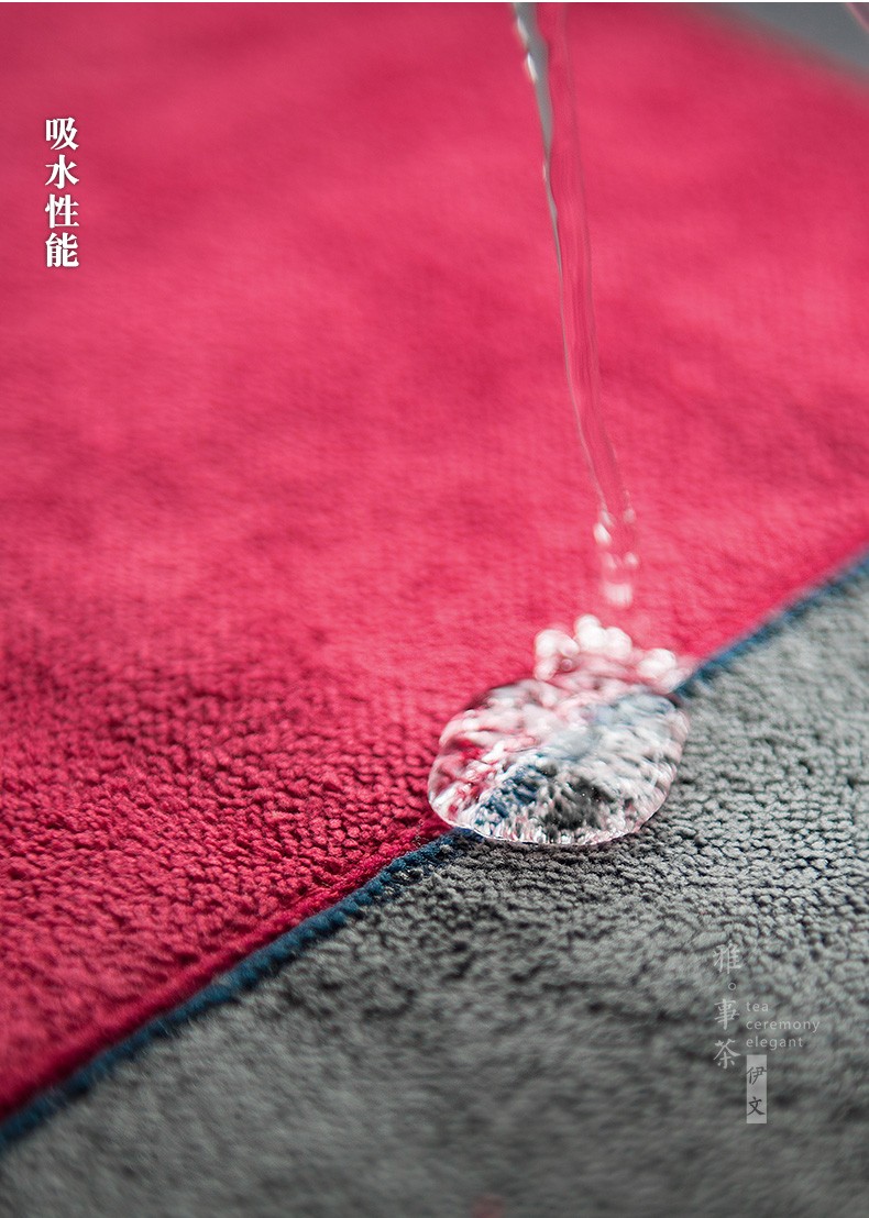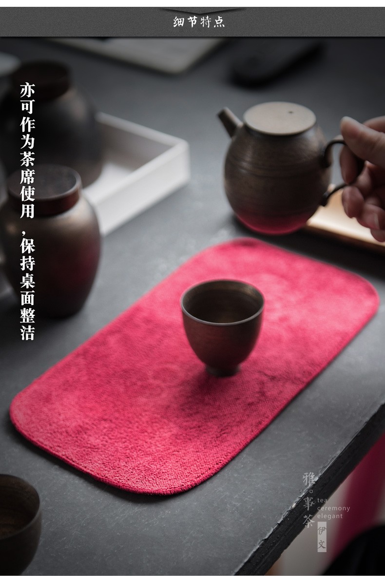 加厚吸水茶巾功夫茶具茶布方形桌巾简约茶盘配件茶道配件 棉麻·吸水洁方(红)Z3c