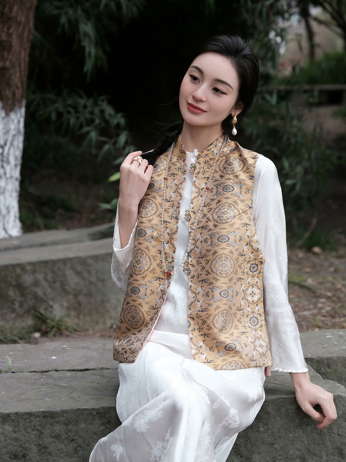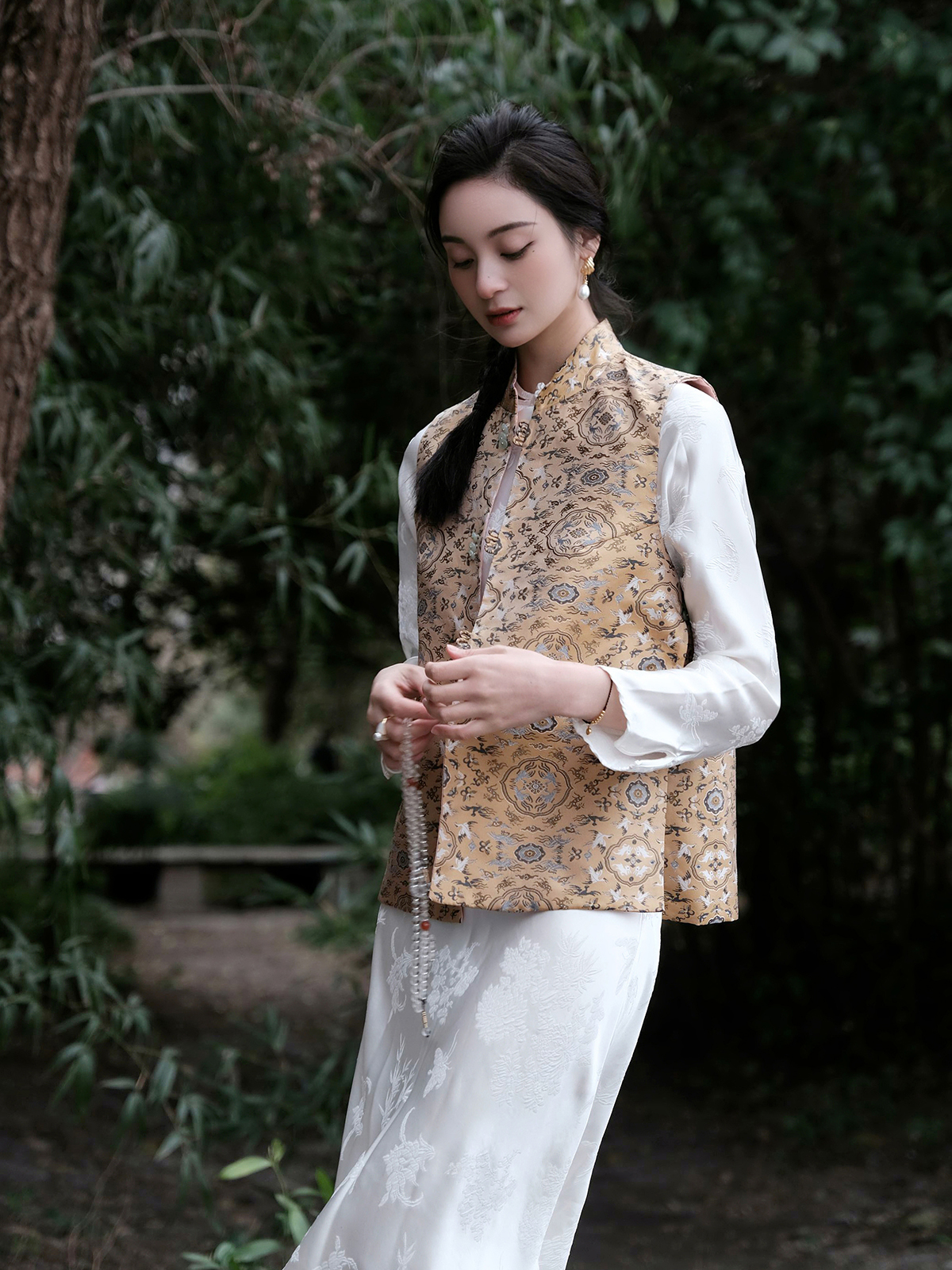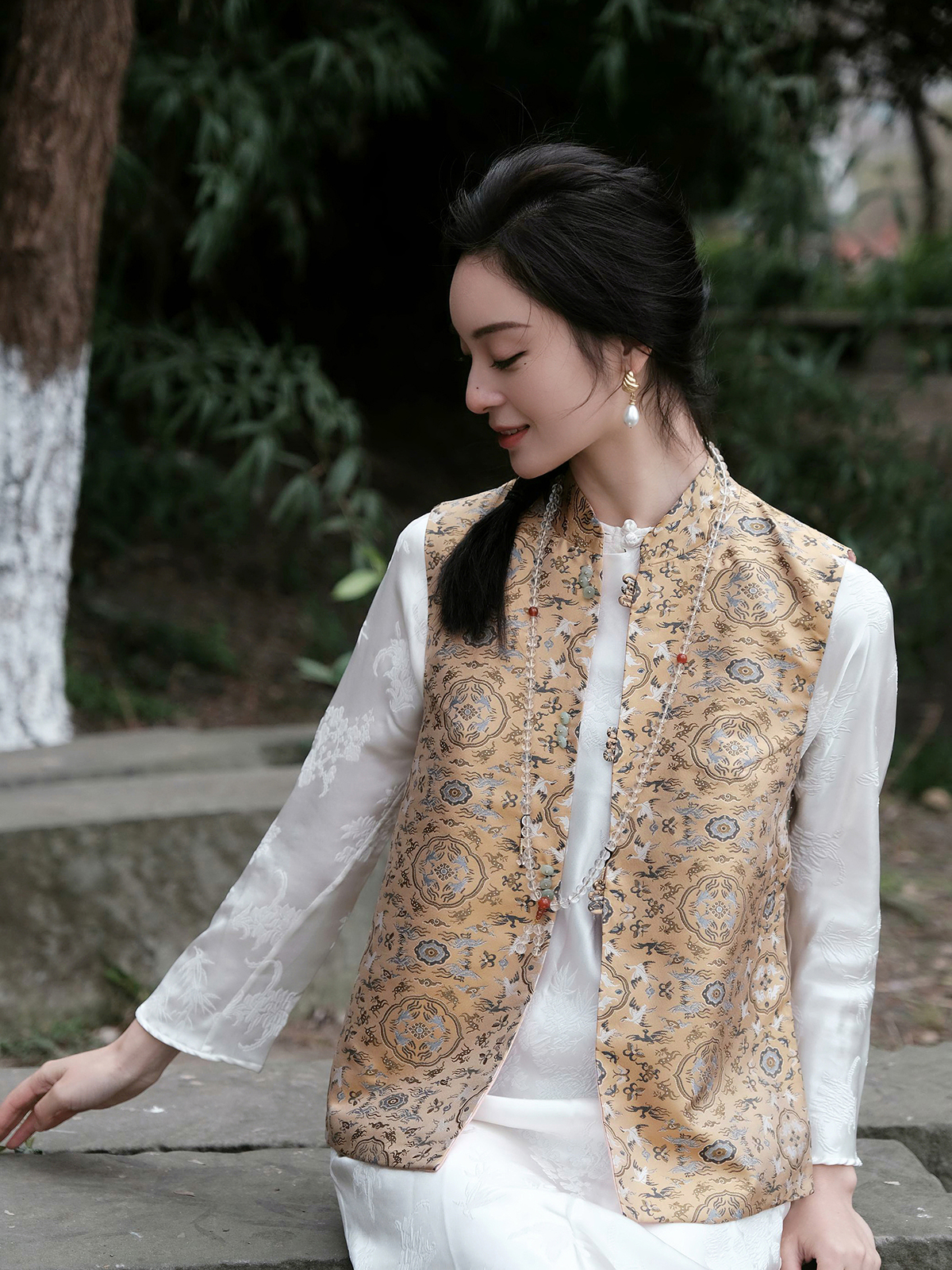 盛唐牡丹 |鹤鹿同春宋锦双面穿马甲