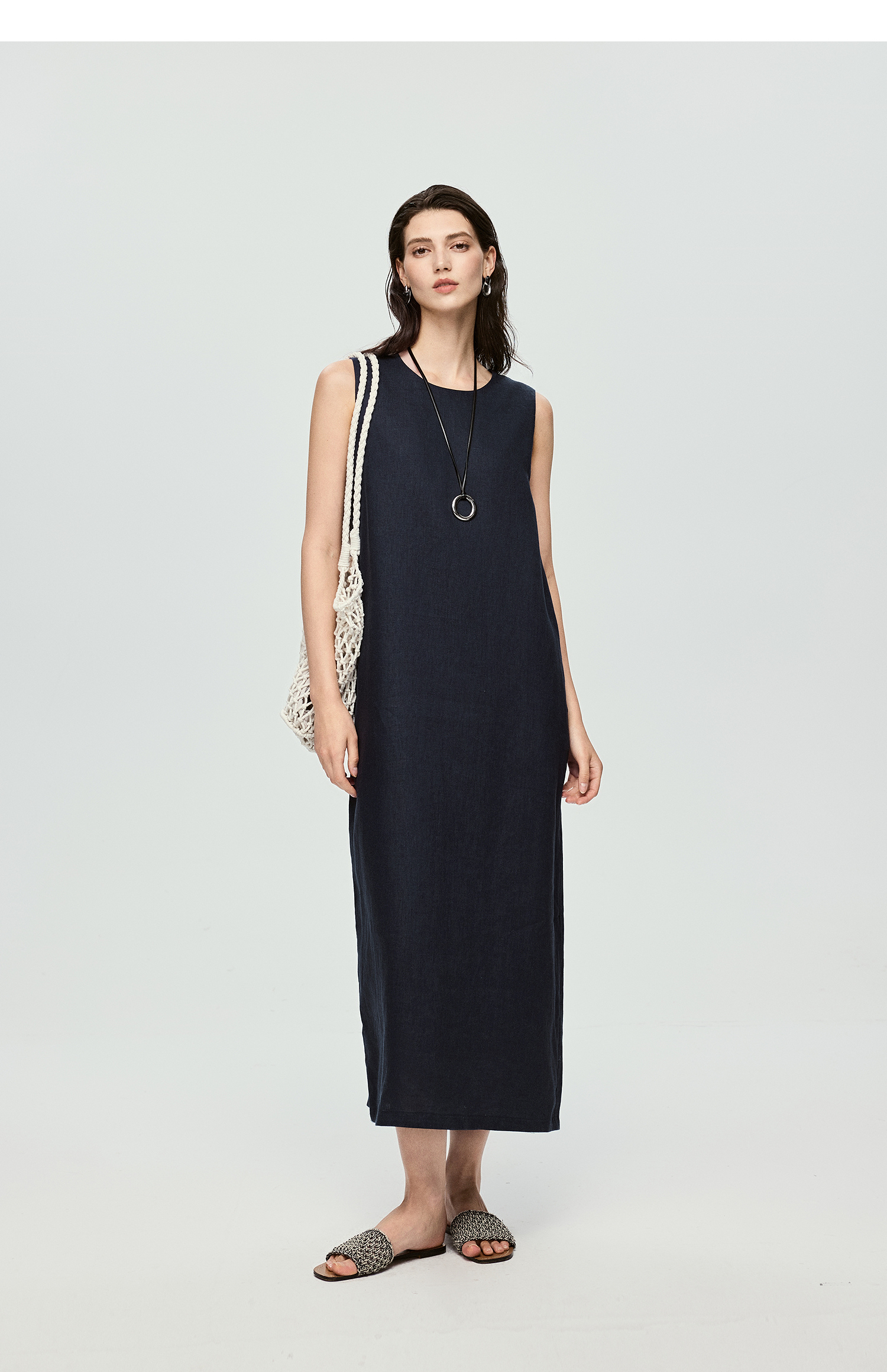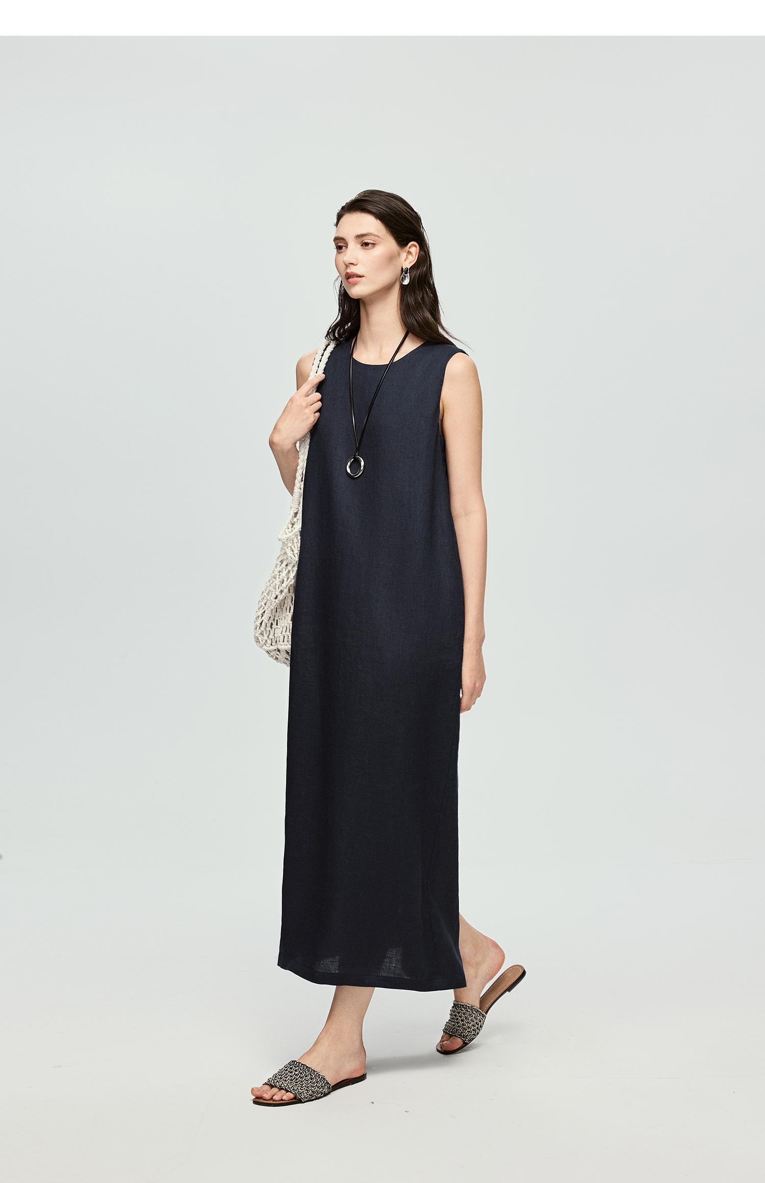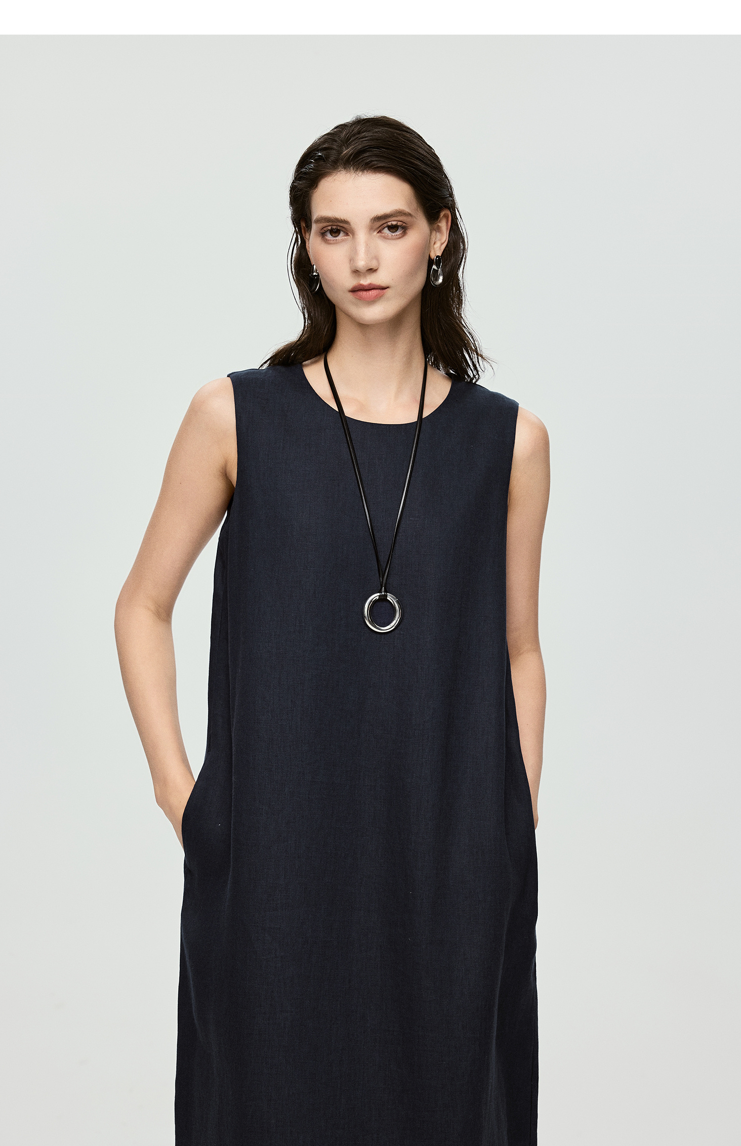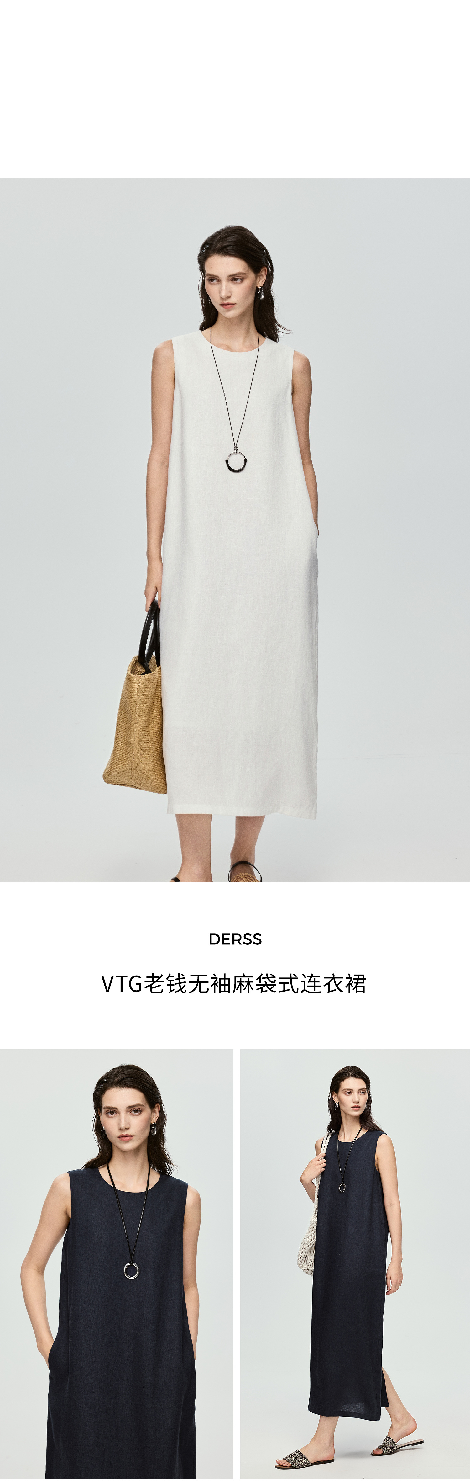 棉仓363616037-初棉全亚麻-简约设计感麻袋式连衣裙