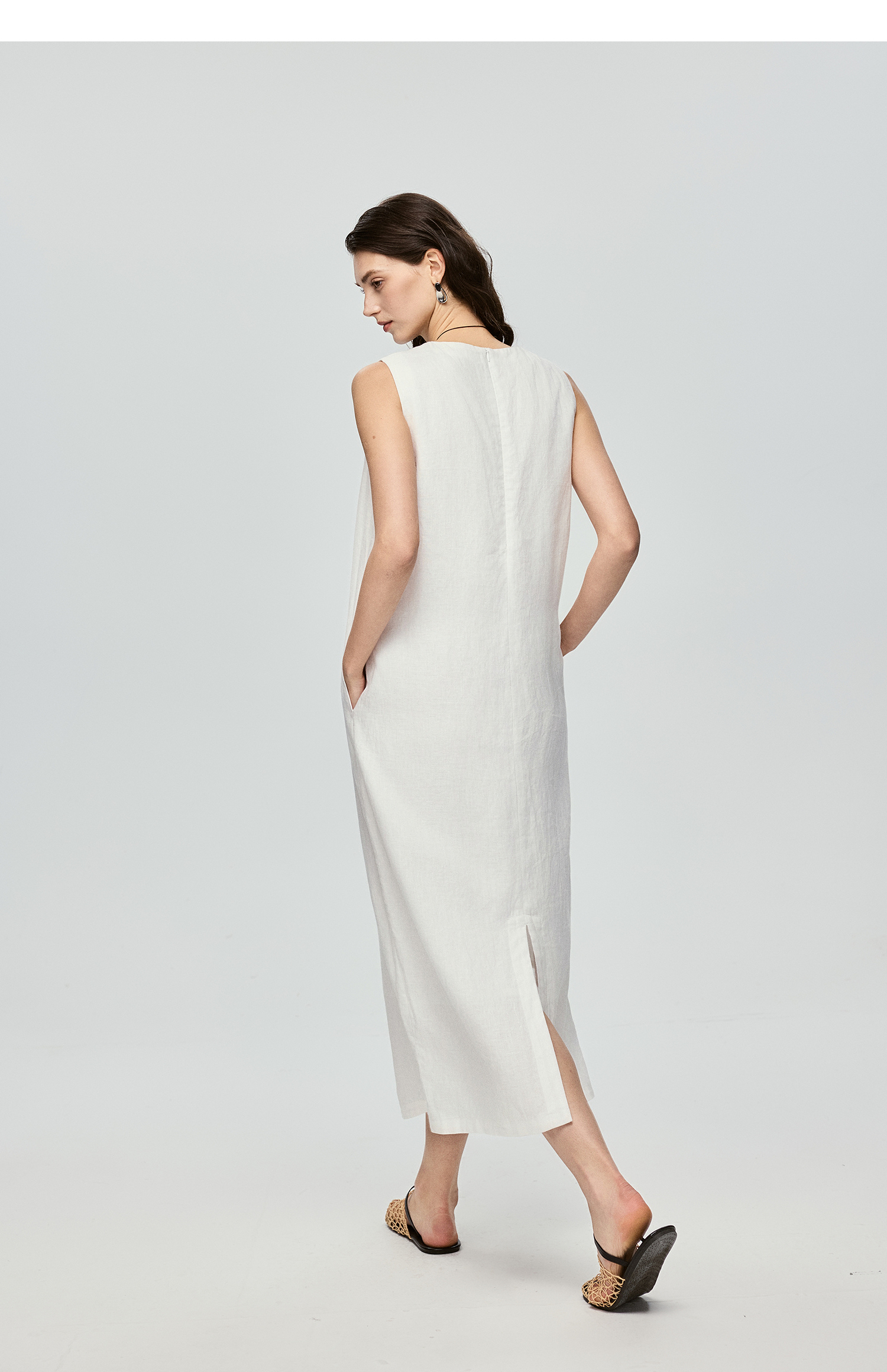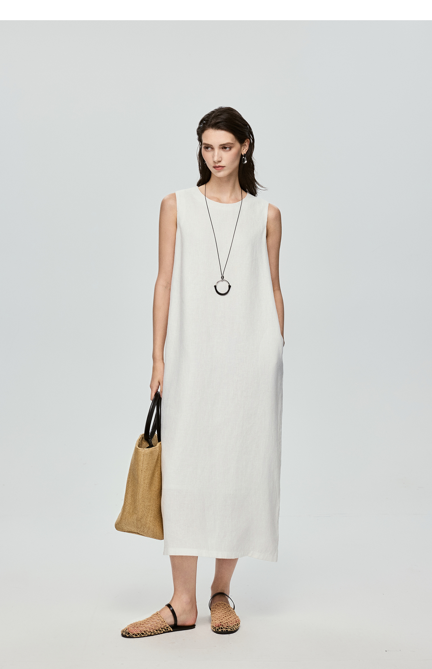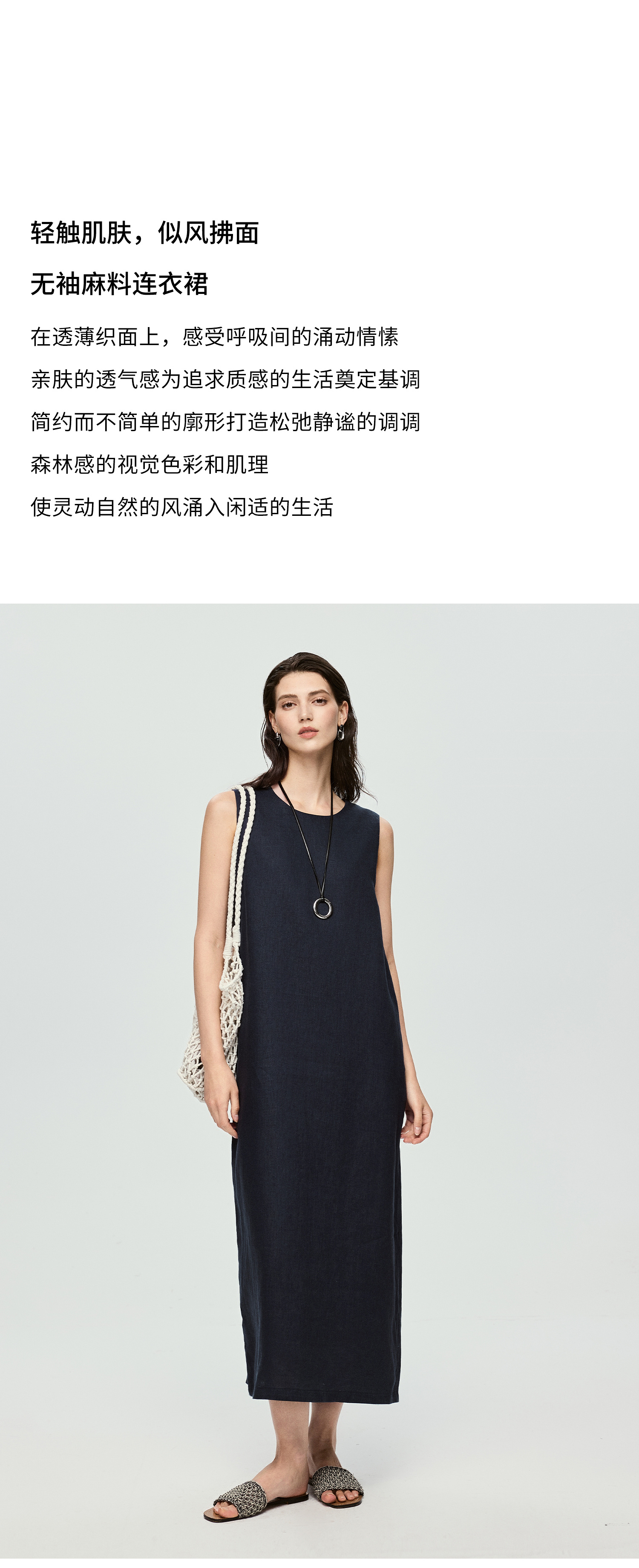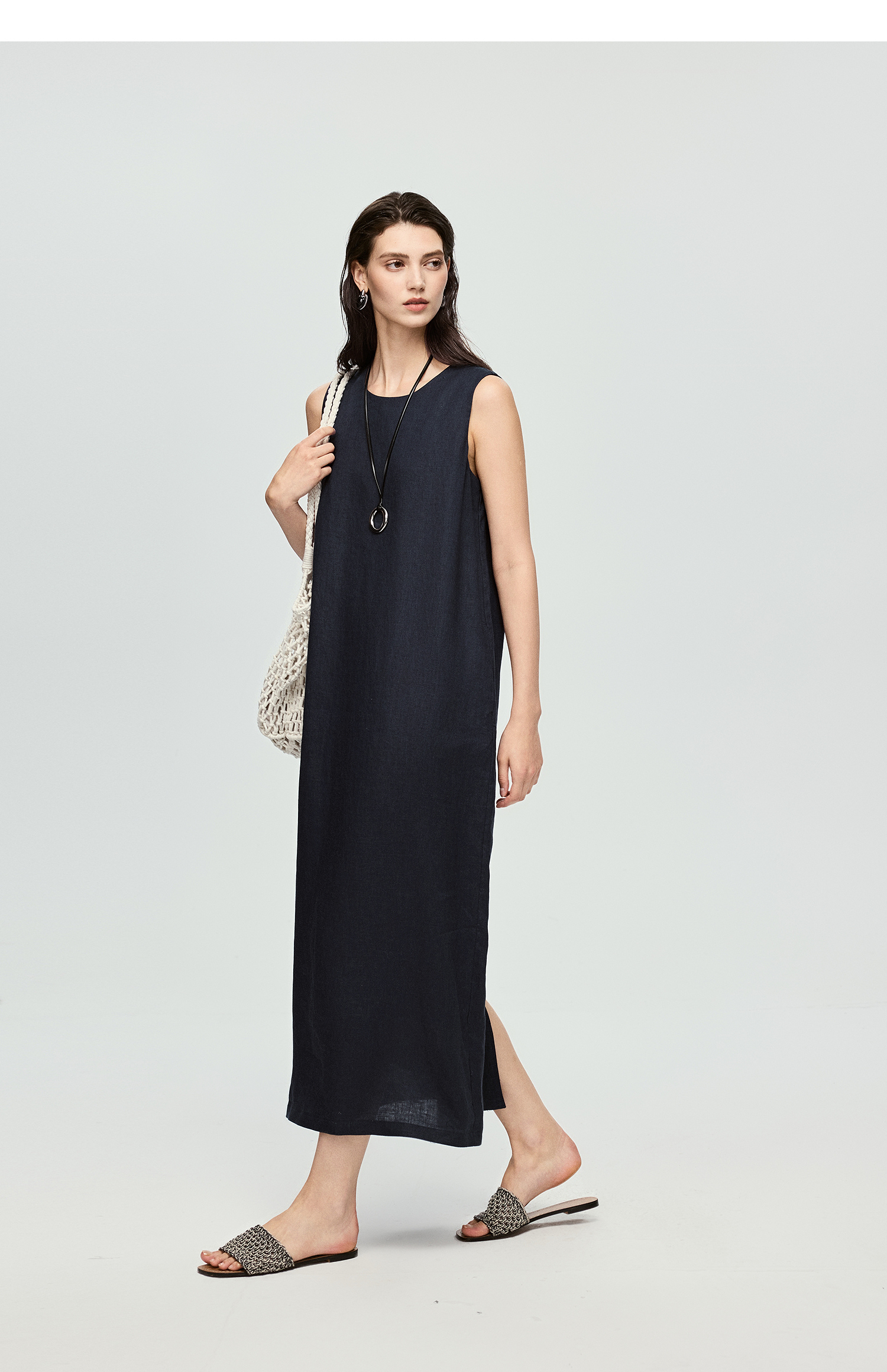 棉仓363616037-初棉全亚麻-简约设计感麻袋式连衣裙