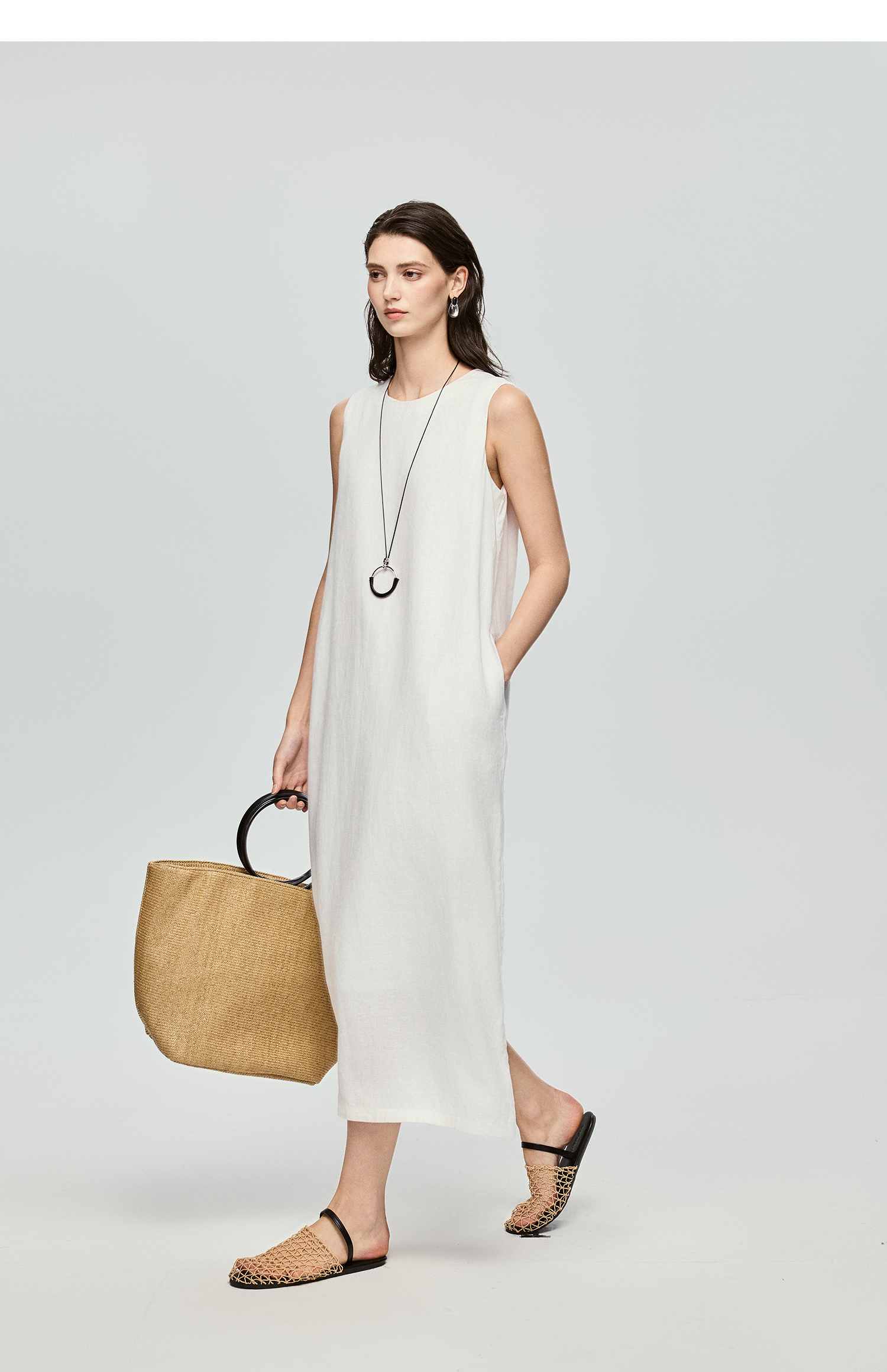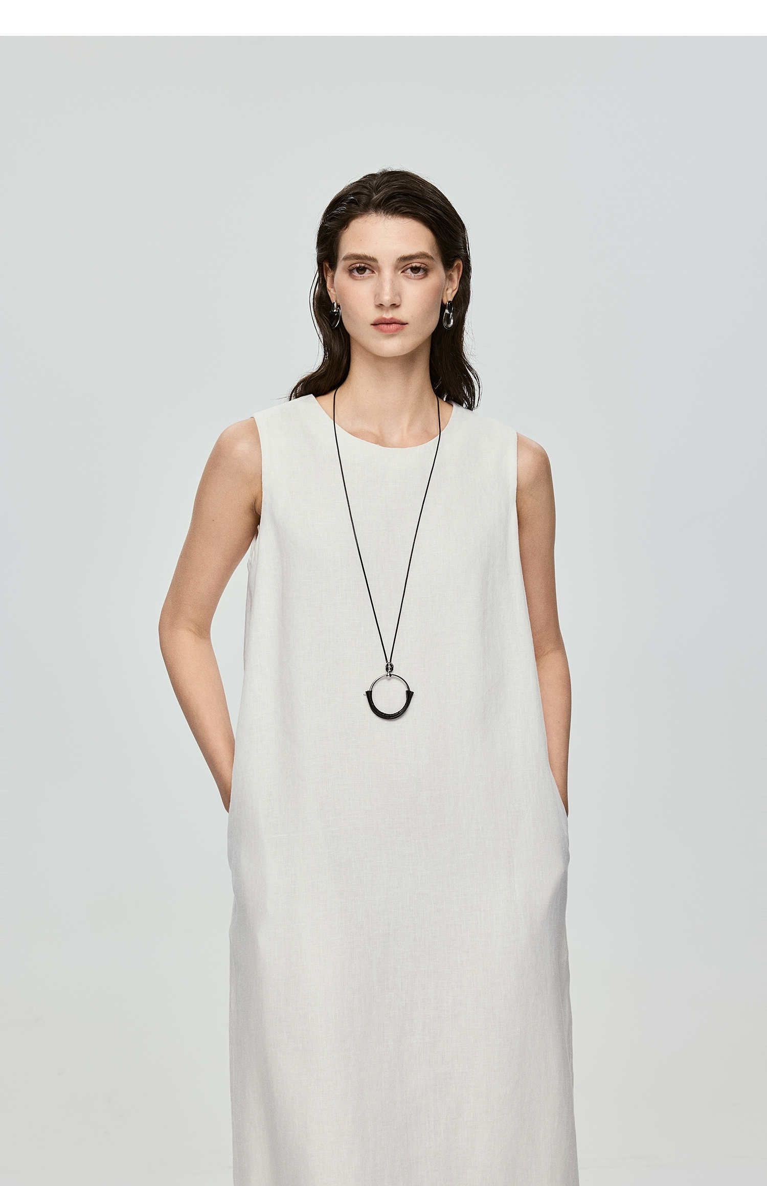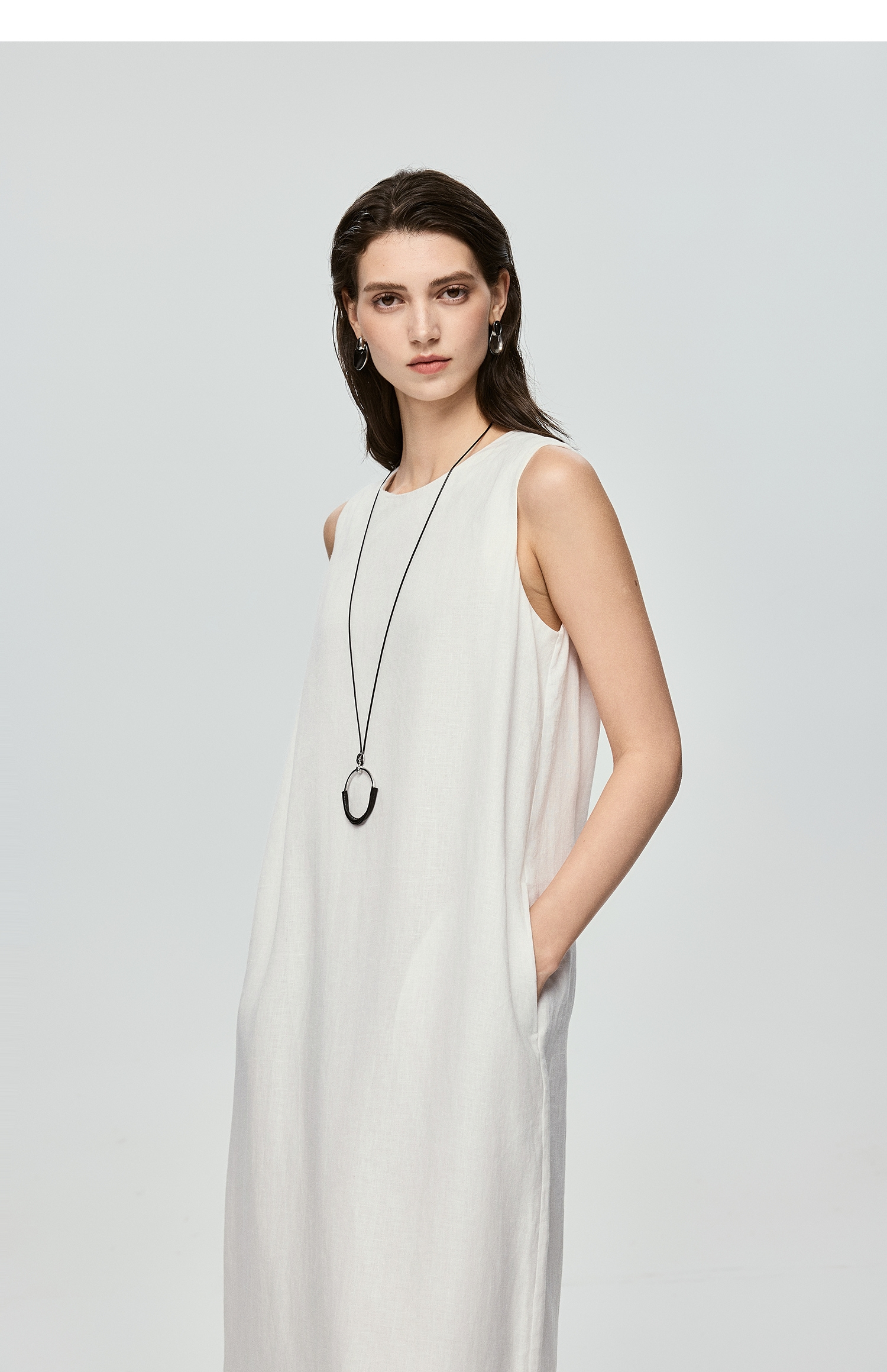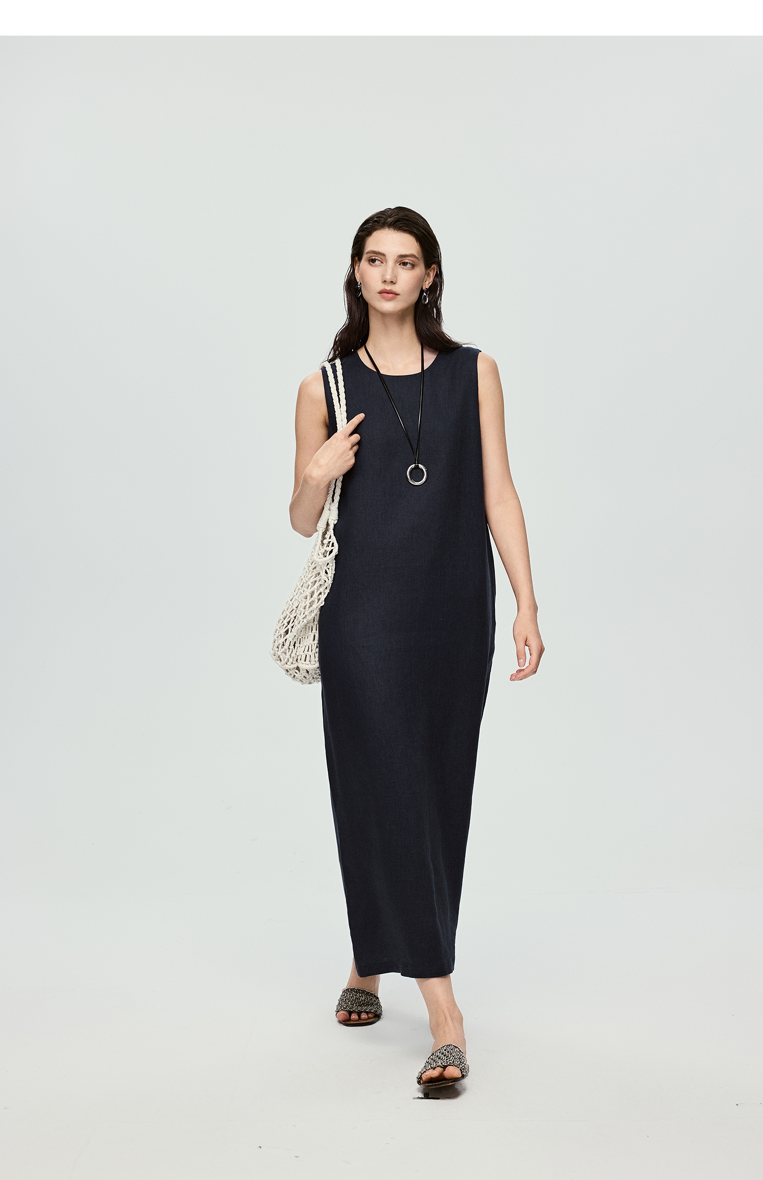 棉仓363616037-初棉全亚麻-简约设计感麻袋式连衣裙