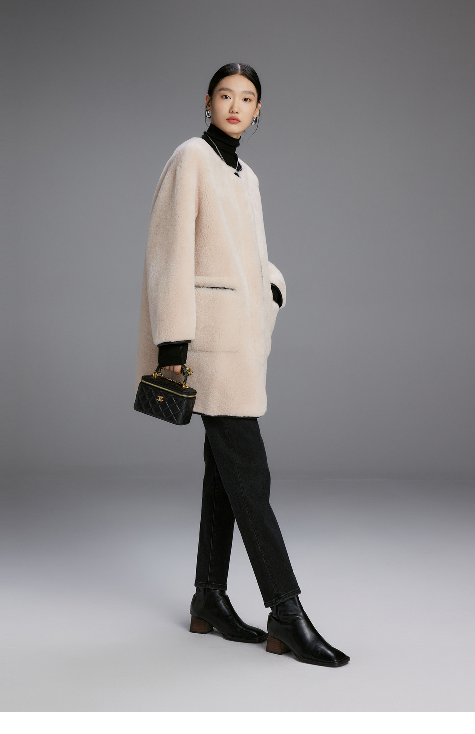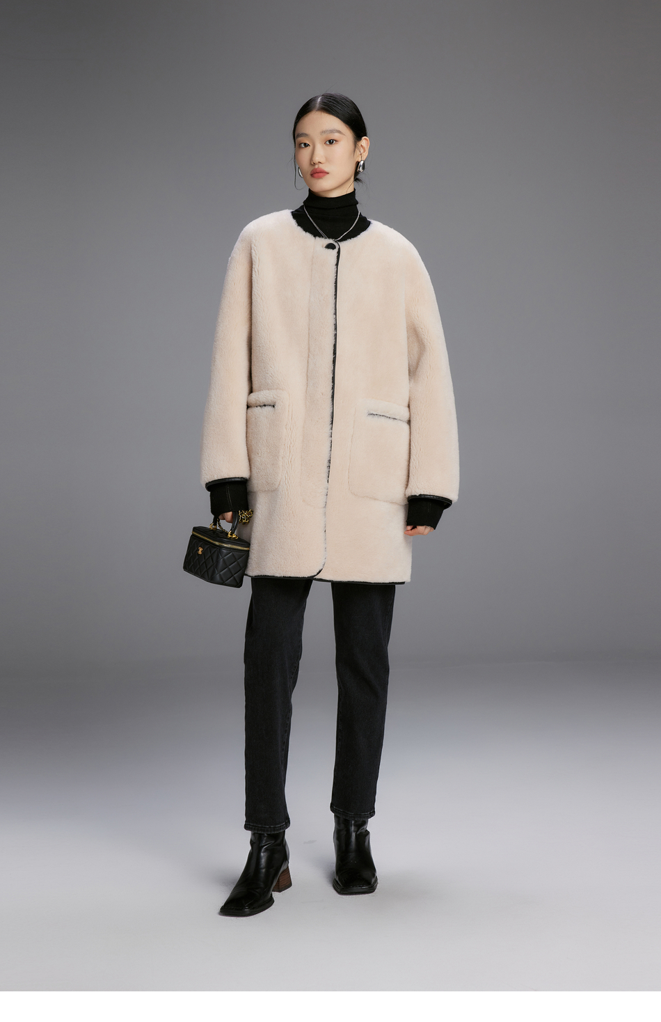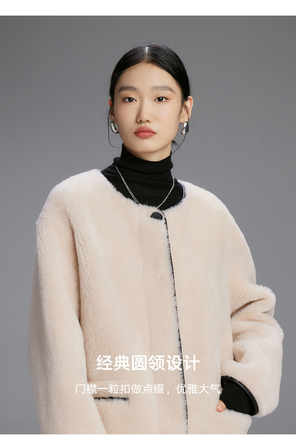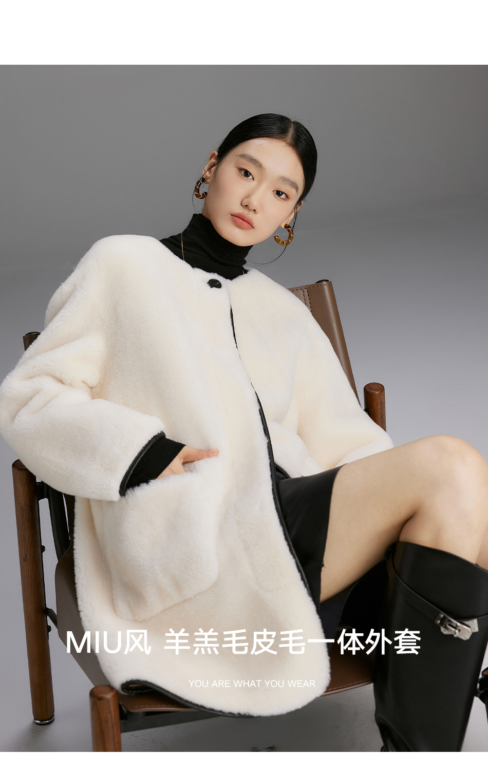 棉仓346666002-贵气MIU风 羊羔毛外套女冬季新款中长款小香风颗粒羊毛外套(货号:346666002)