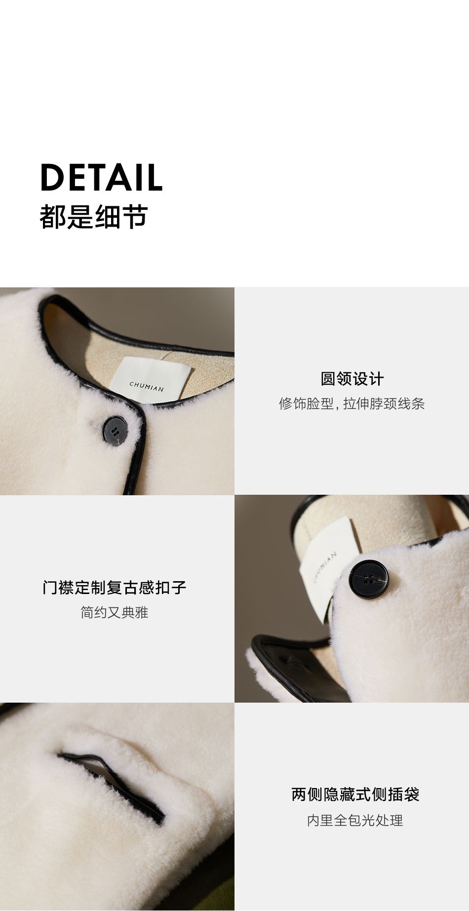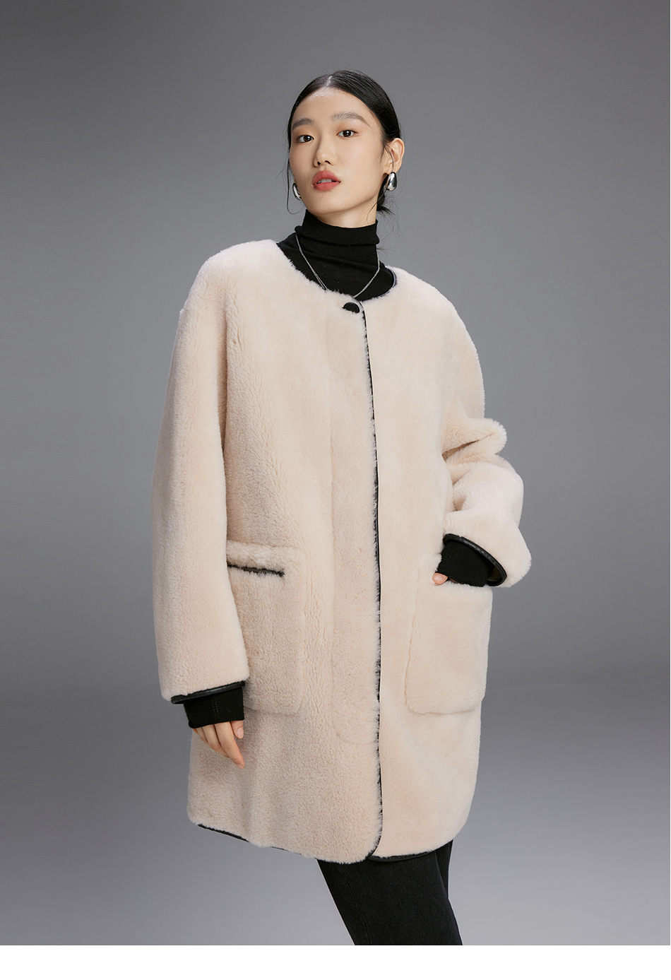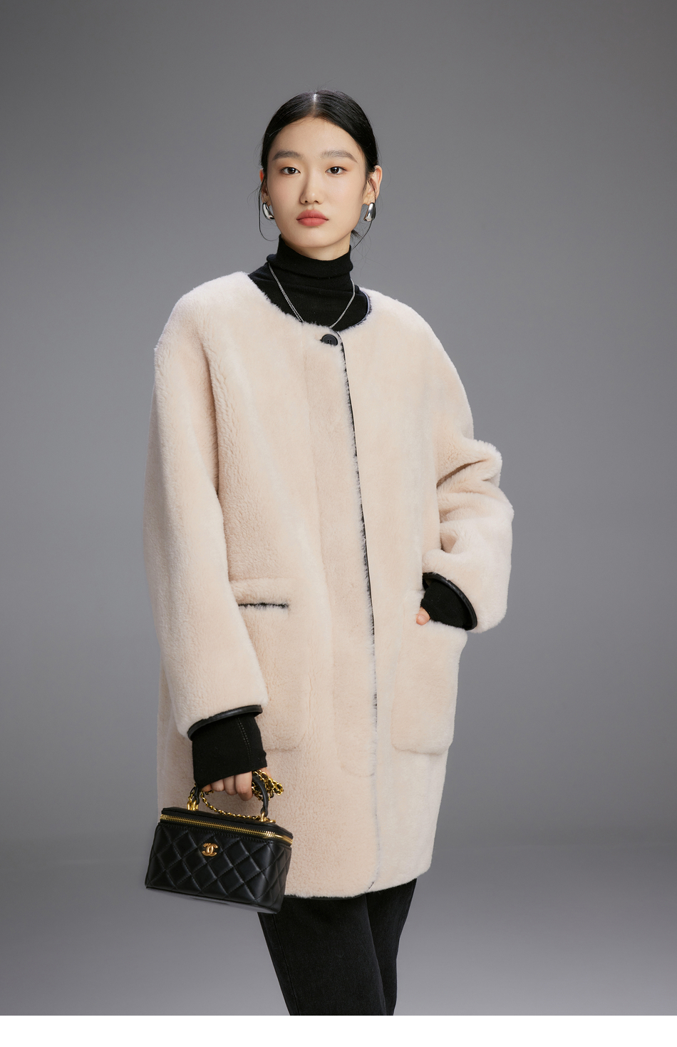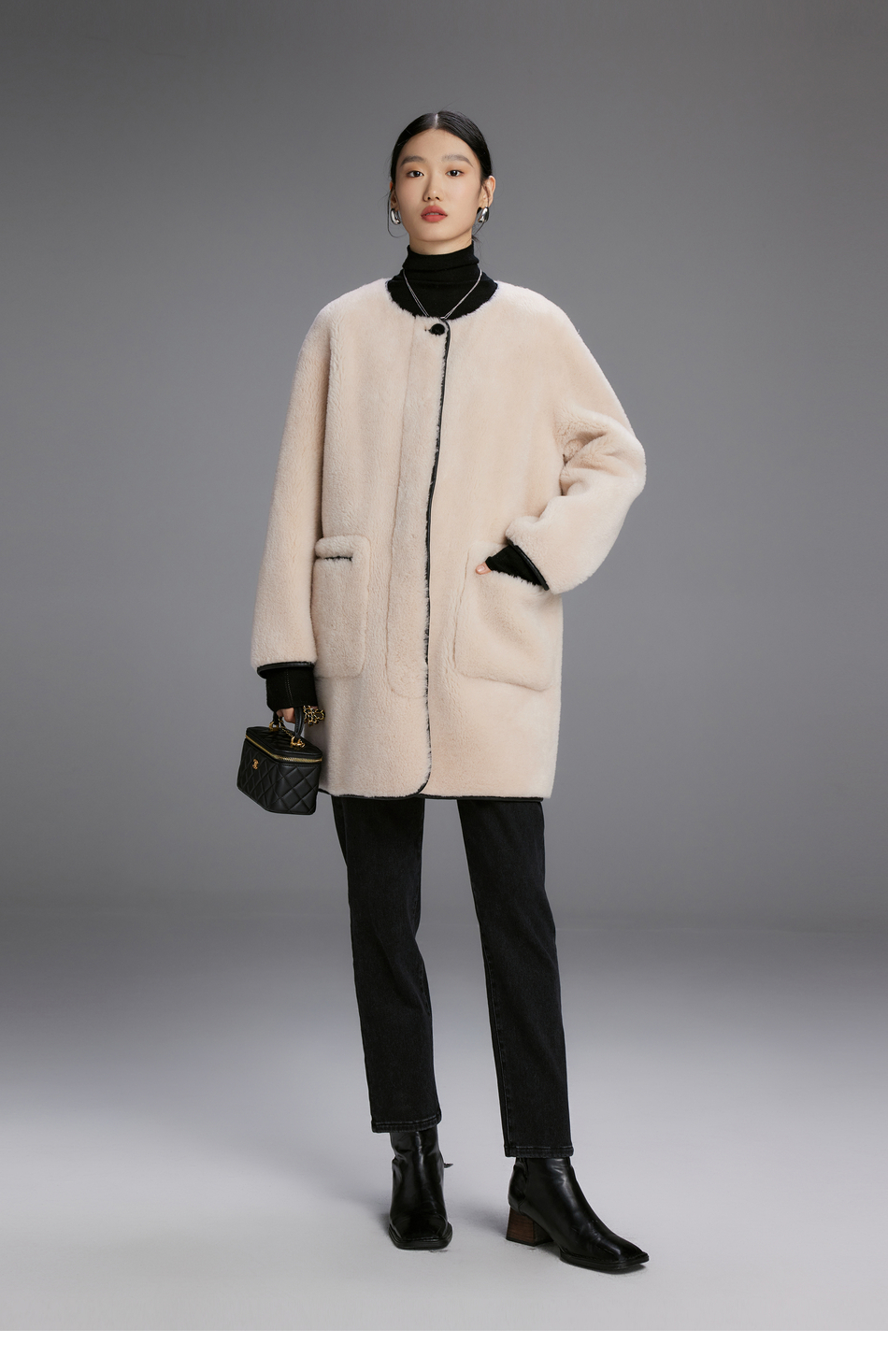 棉仓346666002-贵气MIU风 羊羔毛外套女冬季新款中长款小香风颗粒羊毛外套(货号:346666002)