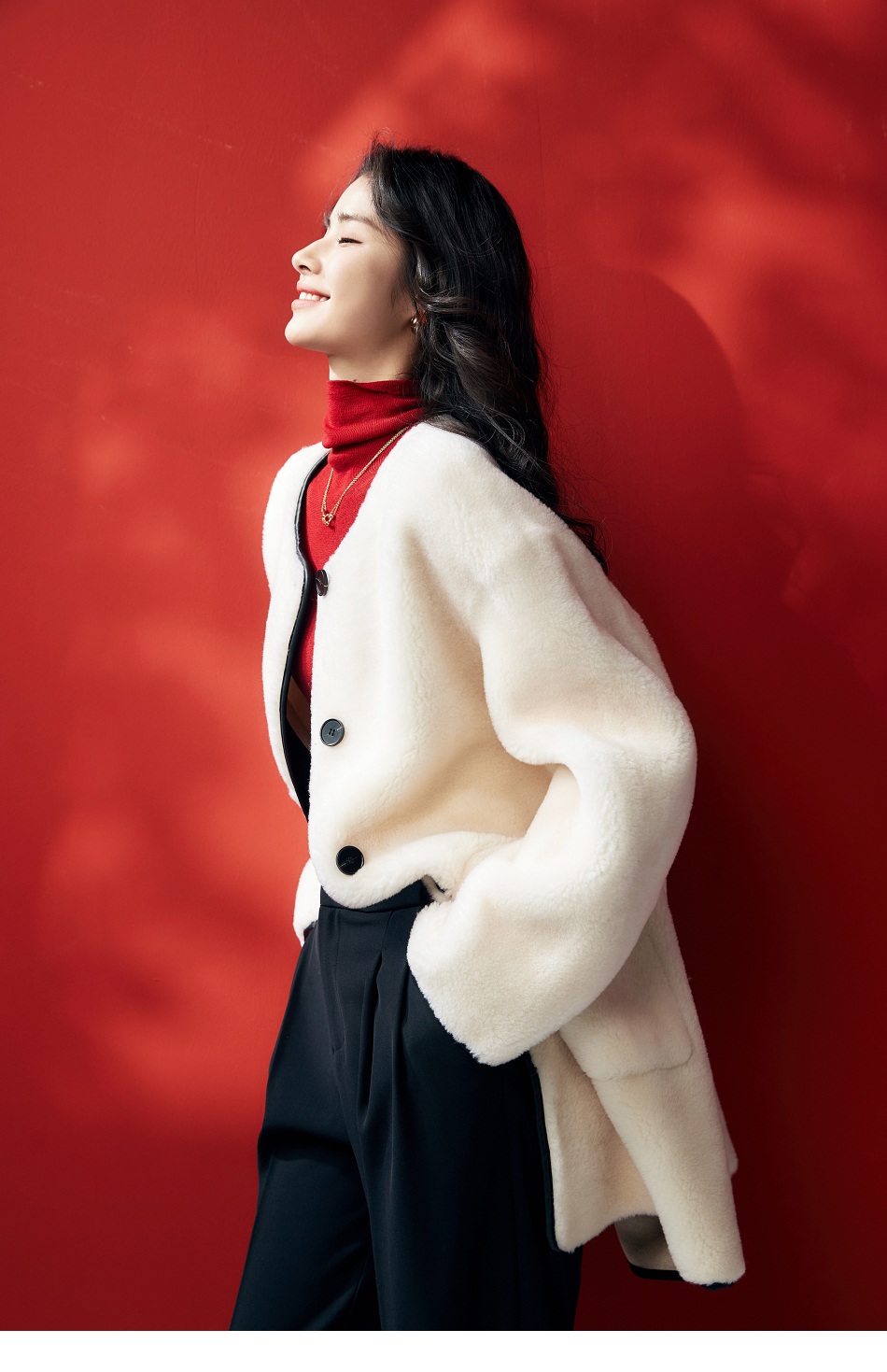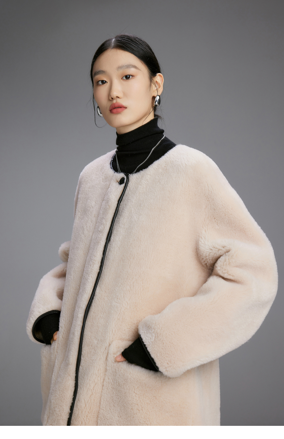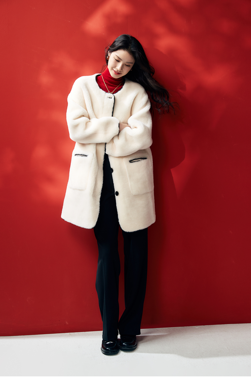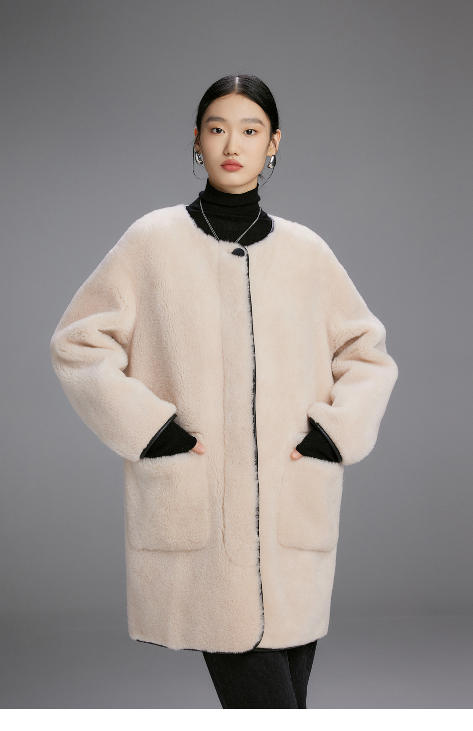 棉仓346666002-贵气MIU风 羊羔毛外套女冬季新款中长款小香风颗粒羊毛外套(货号:346666002)