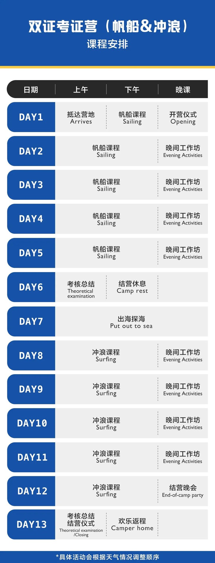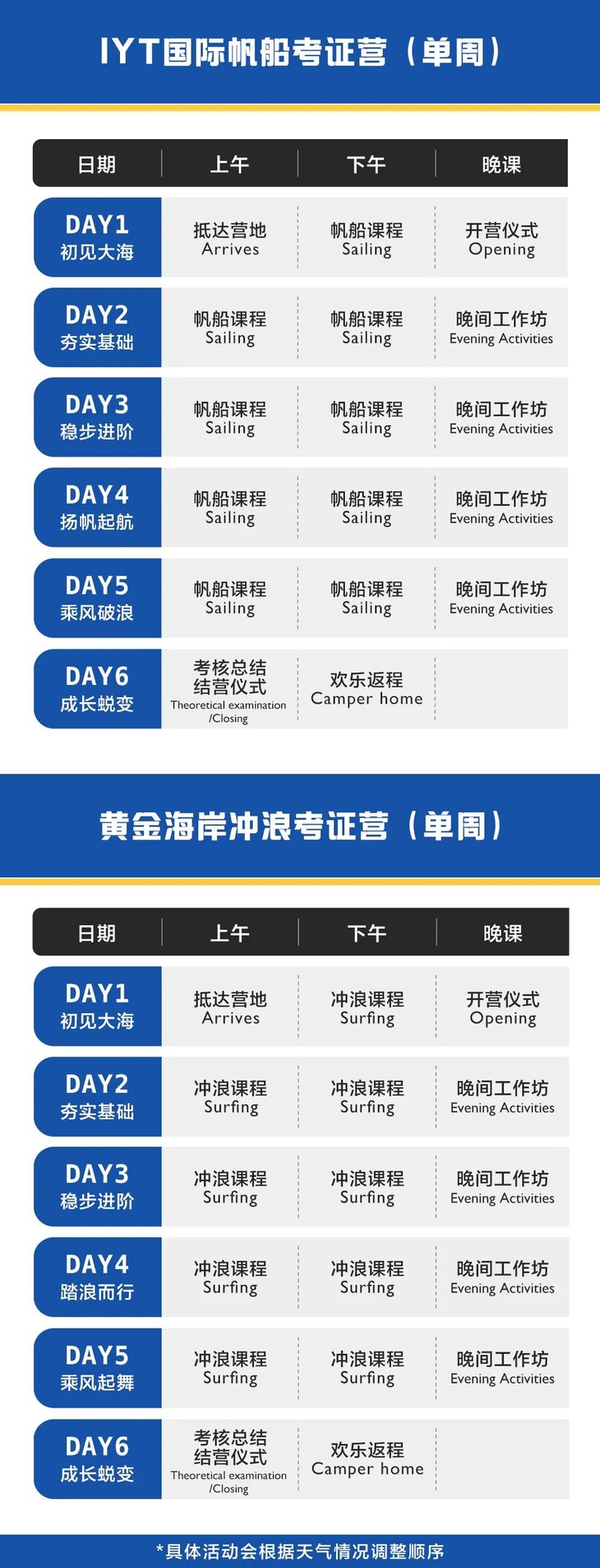 帆船单周营 | 冲浪单周营 | 双证双周营