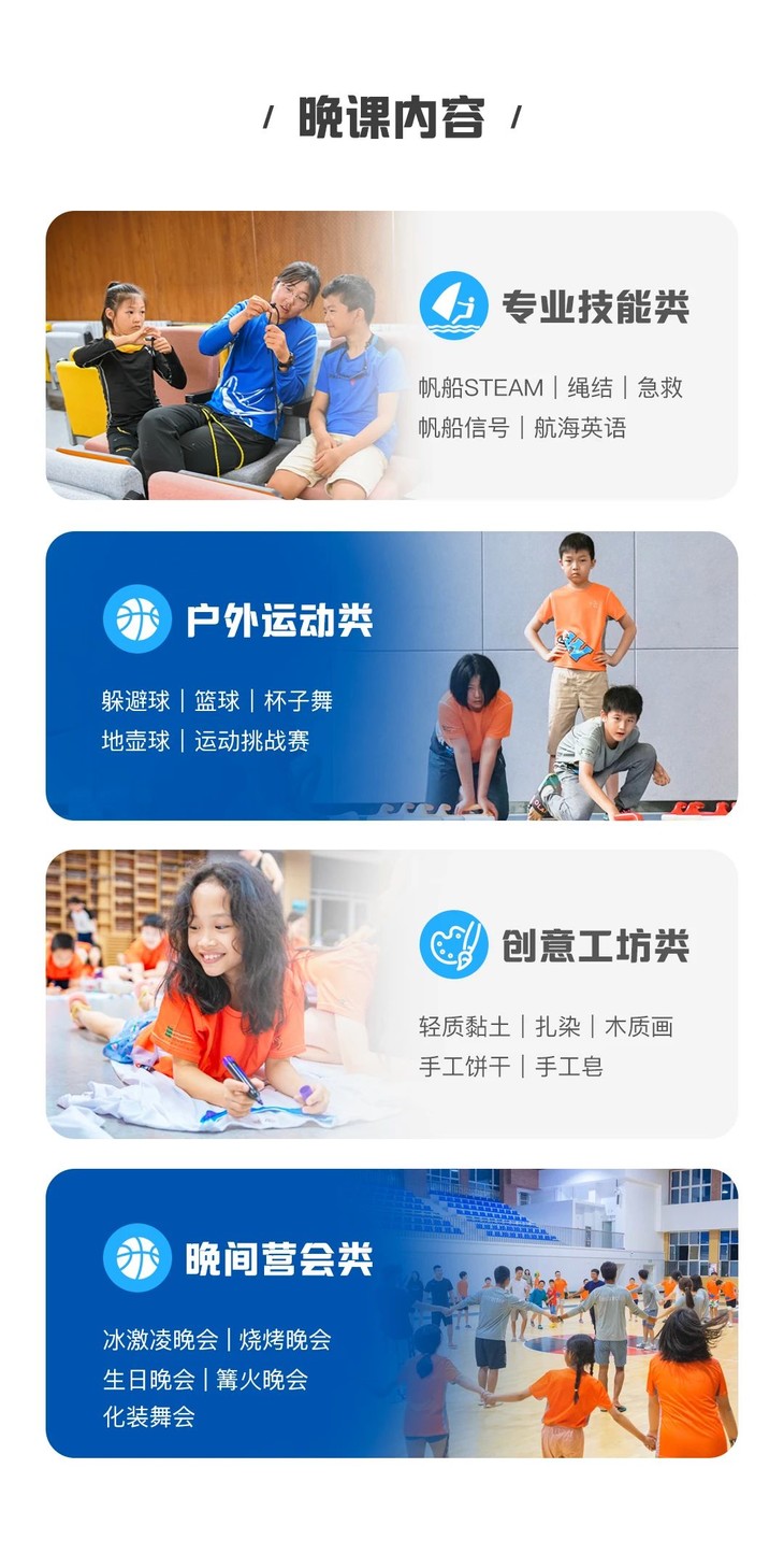 专业进阶小技巧、多样的户外运动、超有趣的创意工坊、每晚party上呼朋唤友…超多丰富活动嗨玩酷玩,孩子根本想不起来碰手机!