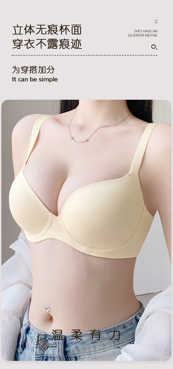 Z1-【适合70BCD-90BCD杯】【小胸薄款】润微裸感无痕薄款内衣女提拉上托防下垂收副乳聚拢内衣文胸罩 水墨芳华/乌兰盈悦