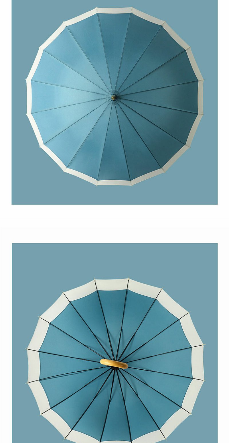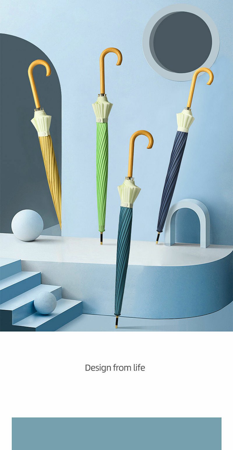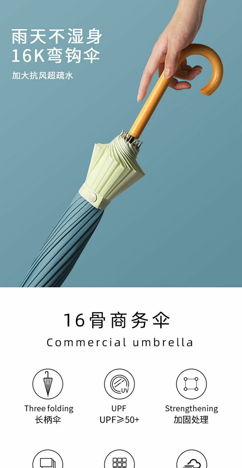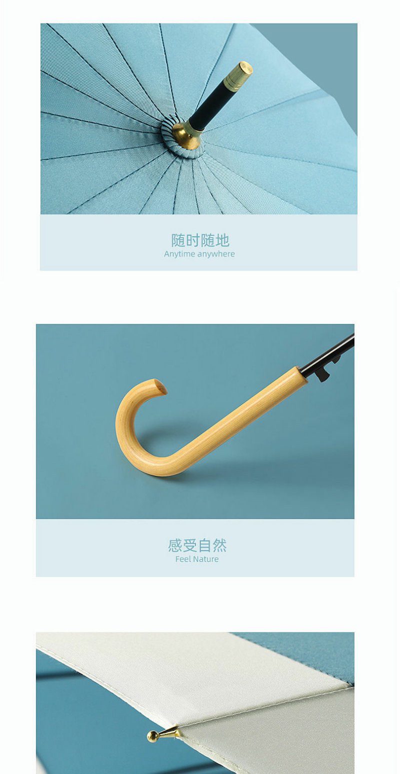 莫兰迪16骨小清新木柄直柄伞日系长柄双人晴雨纯色加大伞