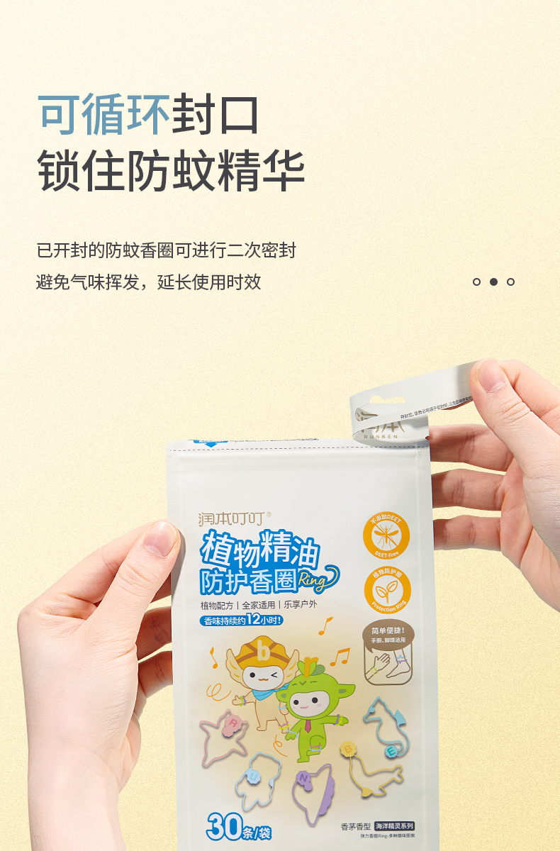 润本叮叮植物精油香圈儿童防蚊手环驱蚊手链