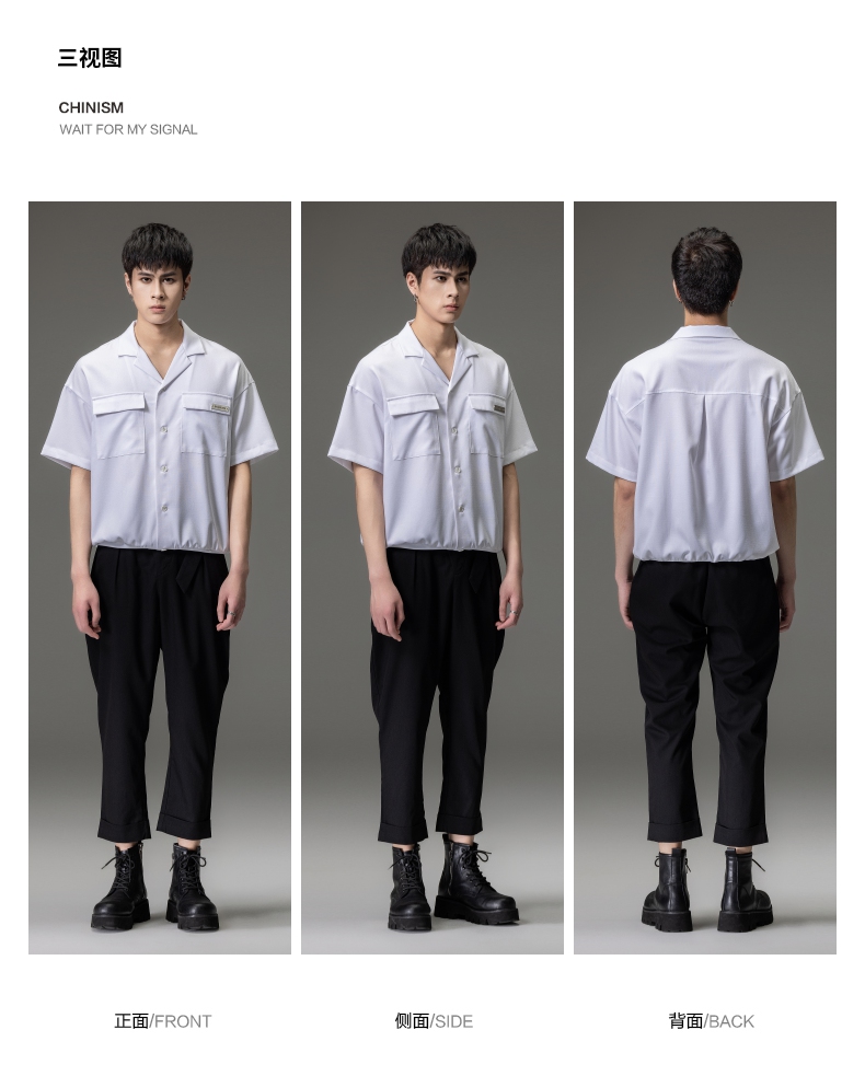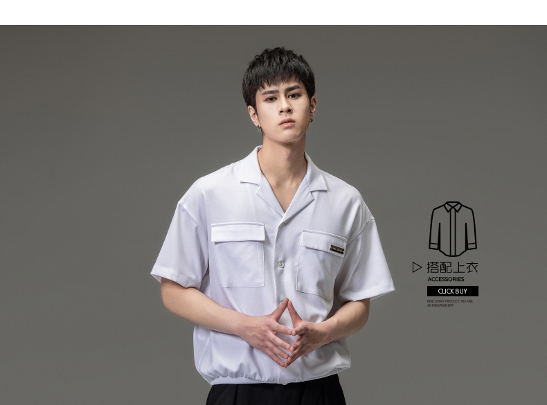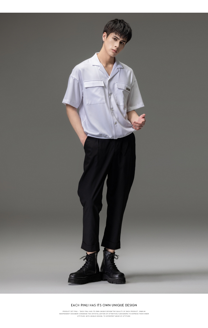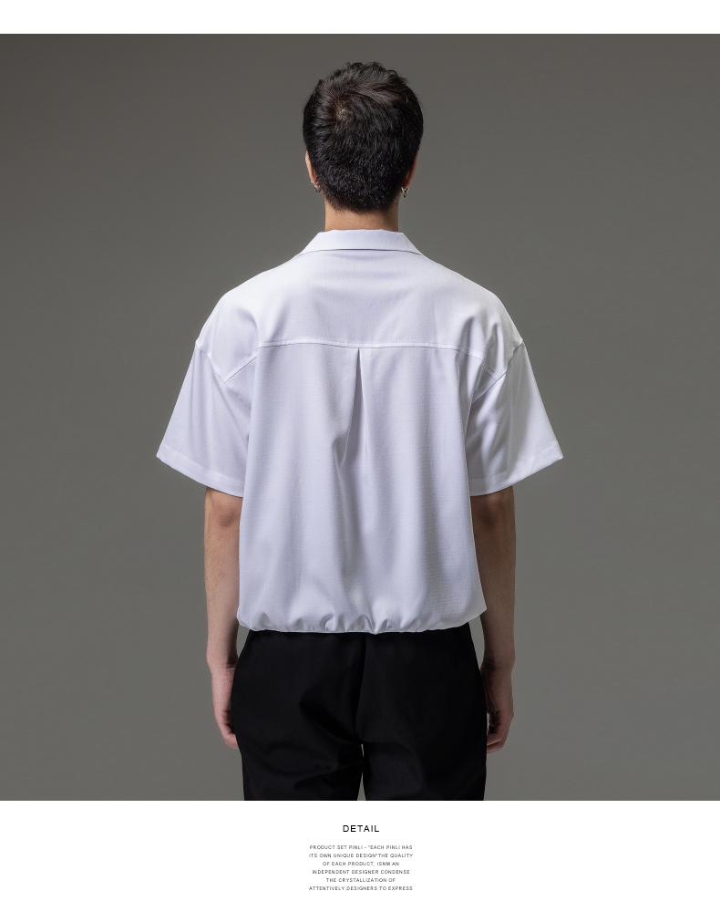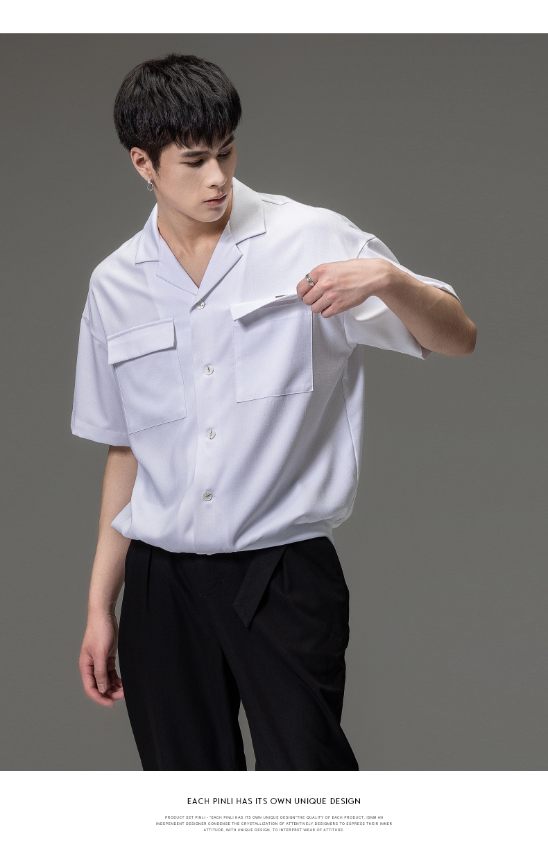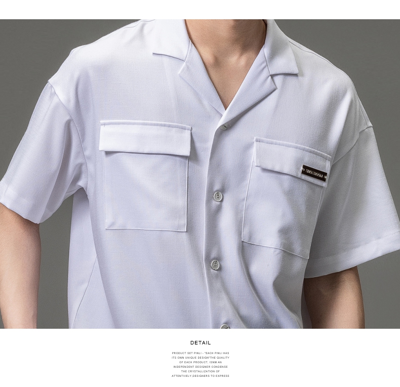 PINLI品立夏季新款男士古巴领短袖衬衫宽松纯色休闲衬衣上衣B232113060