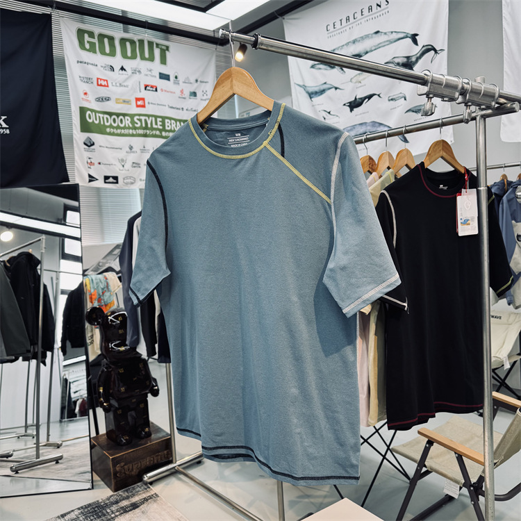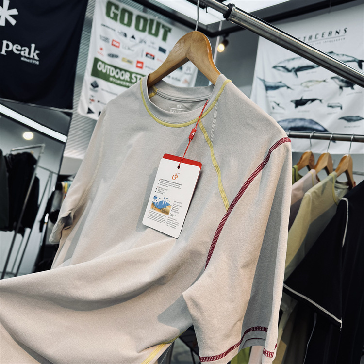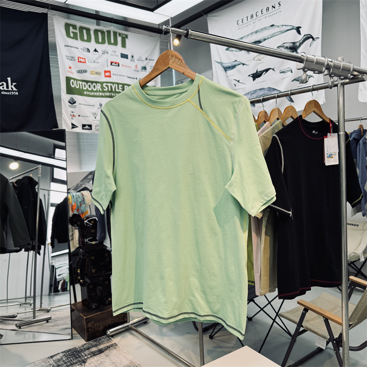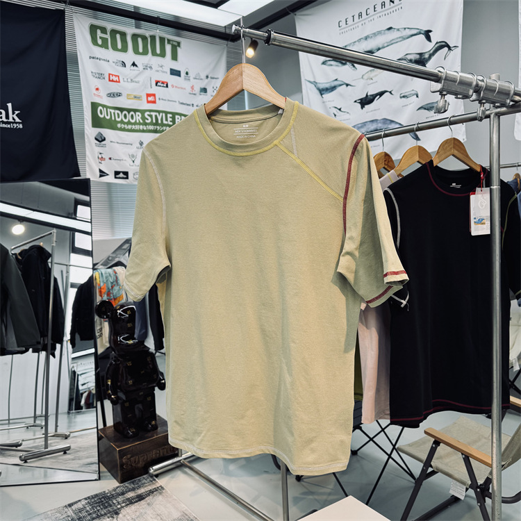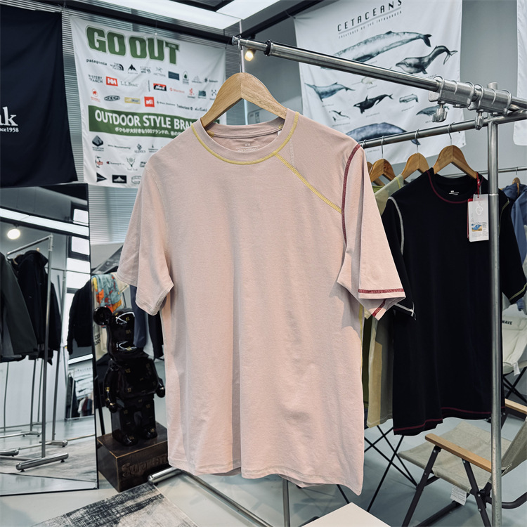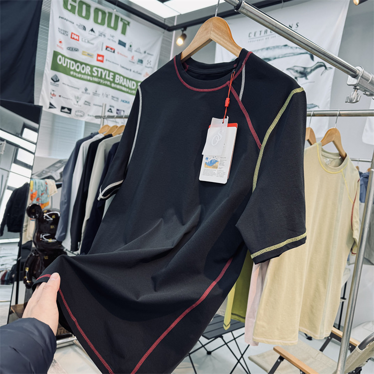 棉感!索罗那男女同款T恤!明线撞色户外山系宽松圆领短袖吸湿速干T恤!