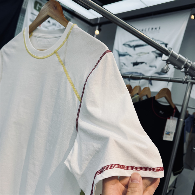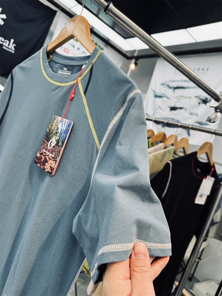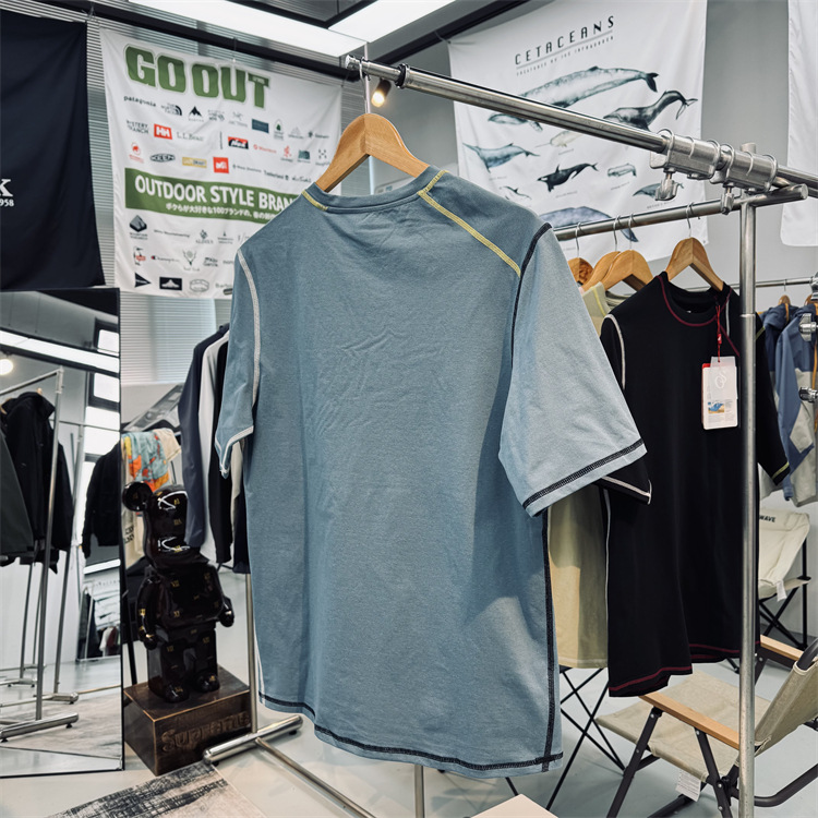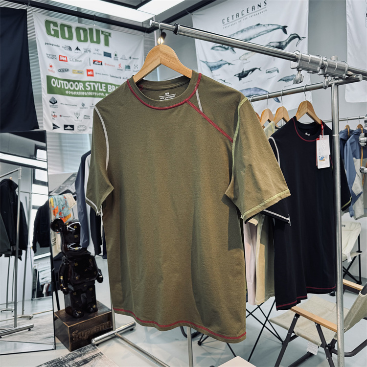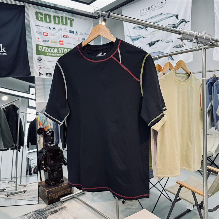 棉感!索罗那男女同款T恤!明线撞色户外山系宽松圆领短袖吸湿速干T恤!