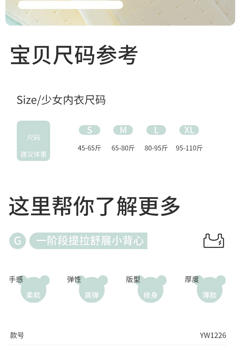 【薄不凸点】一阶段发育期女童中大童小学生运动背心儿童6-12岁轻薄款少女文胸