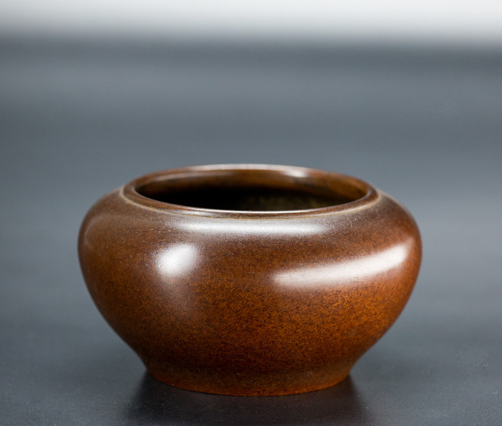 仿自宋代钵盂样式。钵盂本为佛门法器,由天竺国随佛教传入中国,初为化缘之用,盛食、盛水,盛施舍物等。佛经上记载,释迦牟尼手托钵盂,广种福田,所以当时宣德皇帝以此炉广赐天下寺院。钵盂炉简洁优美的线条,更能营造出佛堂高深悠远的意境。后世亦为文房佳器,做水盂或水洗之用。