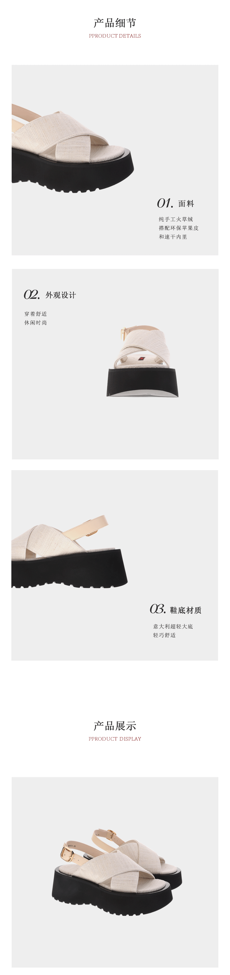 sheme手工火草绒环保苹果皮速干内里休闲厚底女士凉鞋可定制
