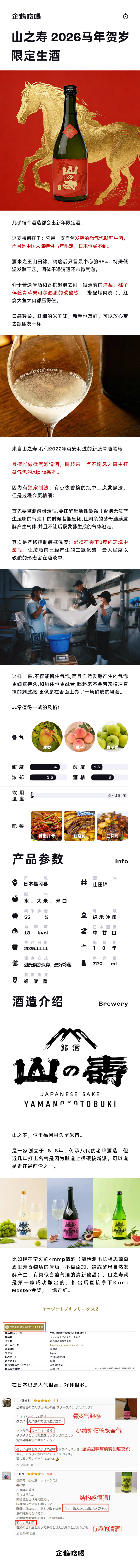 企鹅市集|山之寿酒造 2026年限定马年贺岁酒 限定生酒 纯米吟酿清酒 微气泡洋梨香