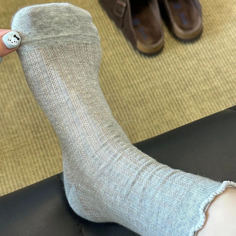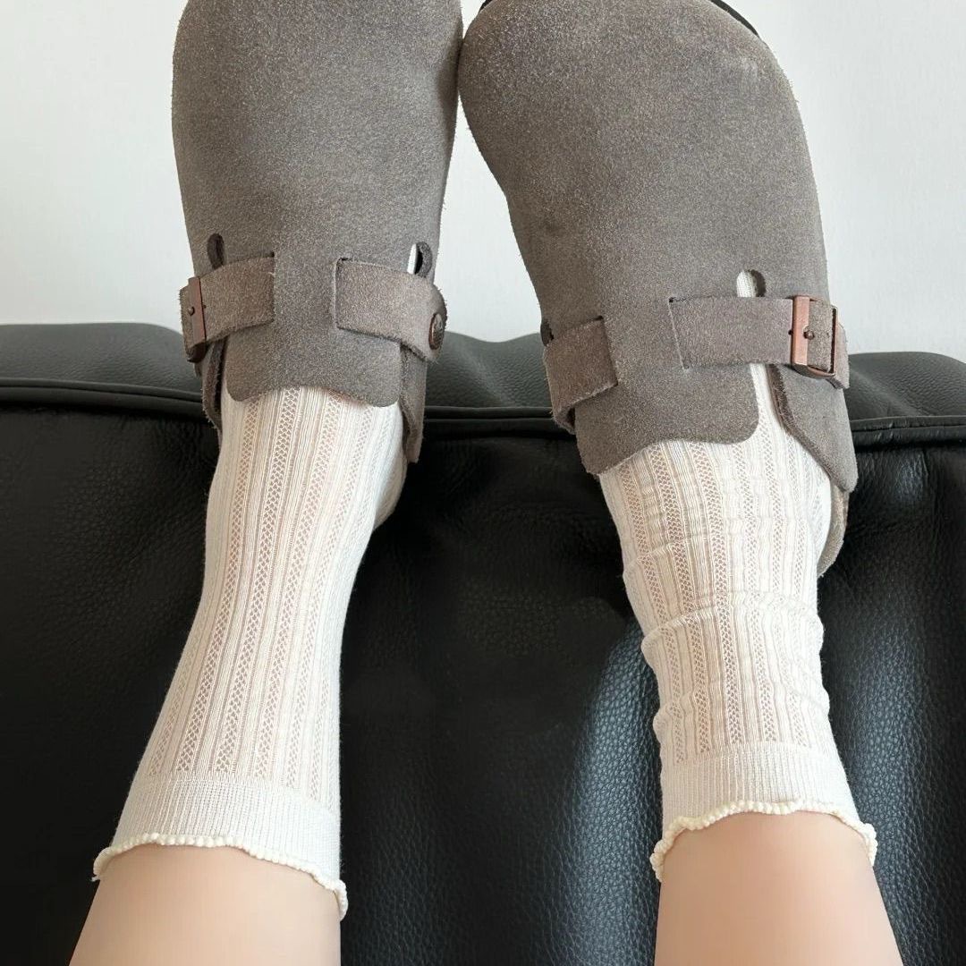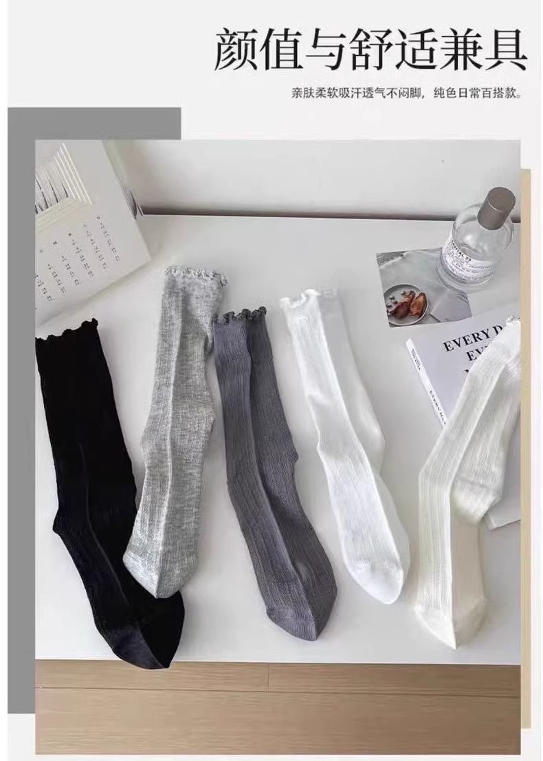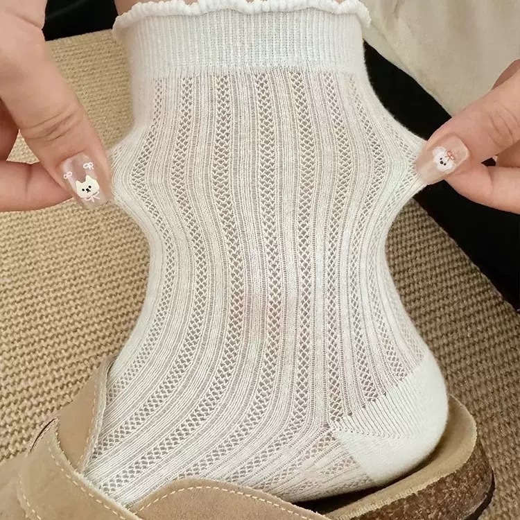 【福利❗️9.9抢5双🔥镂空花边堆堆袜】上脚好看,轻薄网眼,透气不闷脚!春天夏天薄款袜子女纯色中筒袜白色防臭透气少女