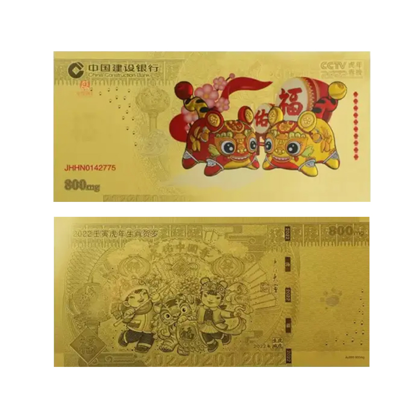 集齐了历年发行的生肖金钞:羊、猴、鸡、狗、猪、鼠均为1克金,牛、虎、兔、龙为0.8克金。