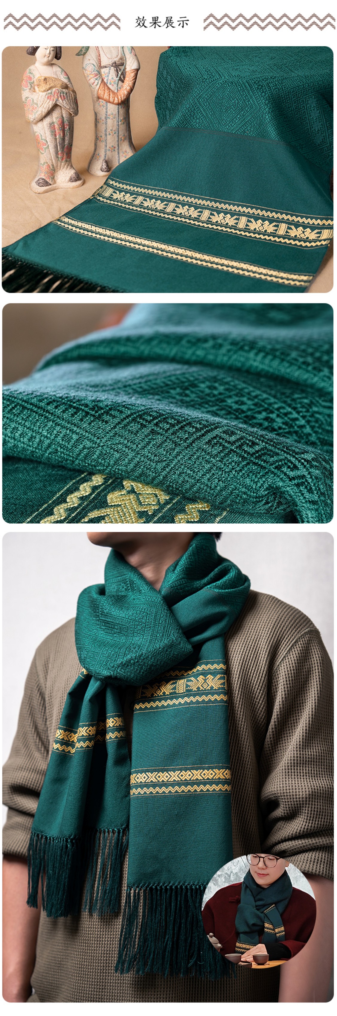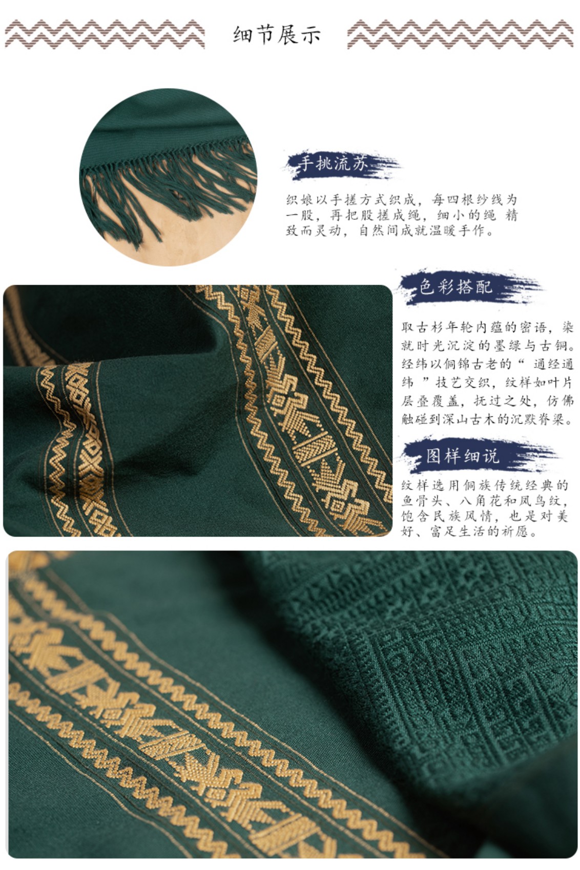 秋冬上新【梭说】盎然.叠青 纯手工限量设计围巾 侗族传统织锦工艺丝光棉 围巾披肩文创礼物 原创设计
