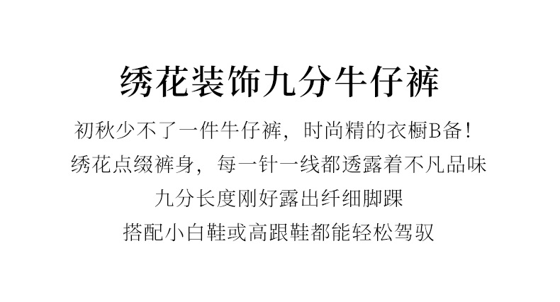 玳莎九分牛仔裤女2024年早秋新款通勤烟管裤绣花装饰时尚小脚裤 EC36301
