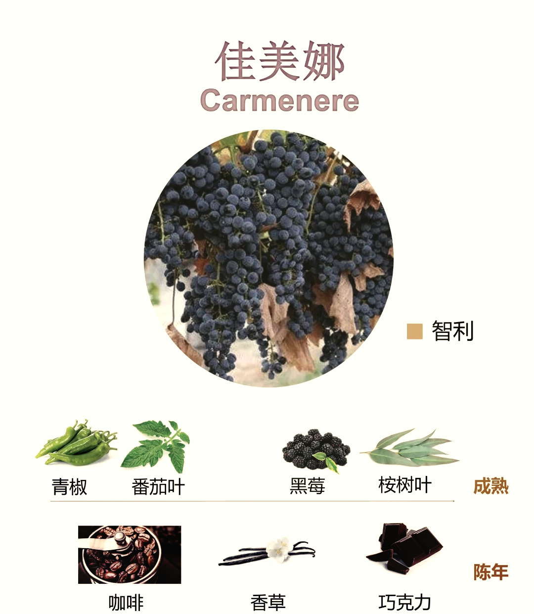 🍇 品种新生 | 佳美娜的优雅蜕变佳美娜原产法国波尔多,如今已成为智利标志性品种。在莱达谷这样的冷凉产区,它褪去了突兀的青椒味,展现出更细腻的单宁、新鲜的果味与复杂的香料感,风格愈加优雅圆润。