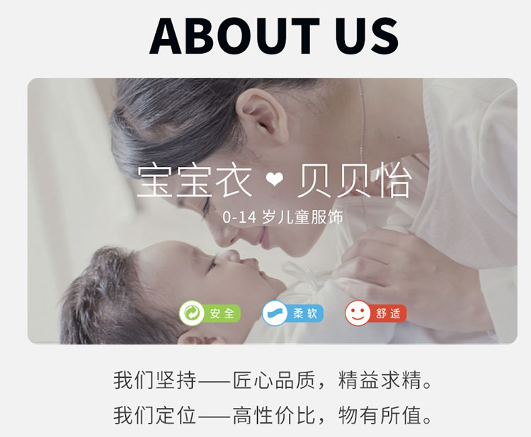 - 贝贝怡专注0-6岁婴幼儿服饰,坚持安全、柔软、舒适的产品理念,为千万中国家庭提供超高品质、安全可靠的婴幼儿服饰产品,妈妈放心,宝宝开心!