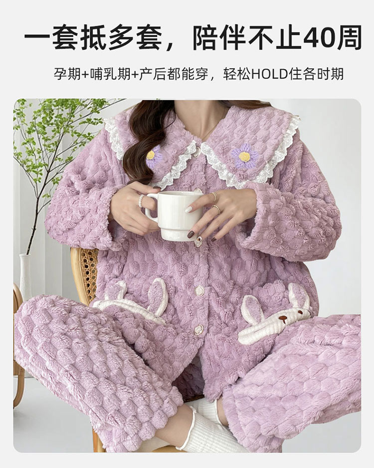 贝贝怡月子服孕妇睡衣套装秋冬孕期产后哺乳家居服透气舒适保暖两件套装ZB4DY007