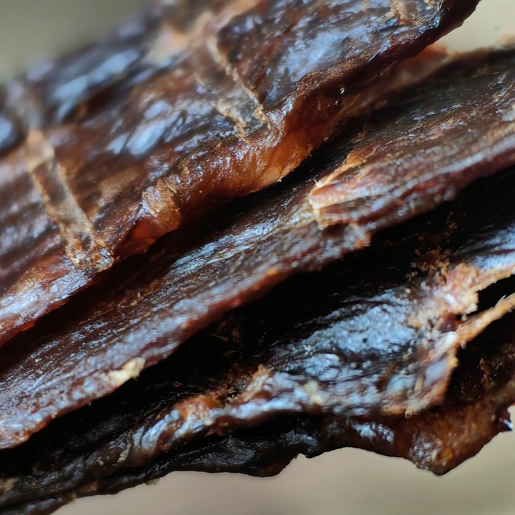 苏尼鲜牛肉干精选中蒙边境草原红牛的后腿肉黄瓜条部位,仅占整头牛的2%,是真正的精华所在。这部分肉质细嫩而富有弹性,经过精心处理后,制成的牛肉干更加细腻入味,撕扯间充满了挑战与乐趣。品牌拒绝一切速成与妥协,坚持使用纯粹的风干方式保留牛肉的原汁原味,非卤制、非油炸、非走私肉、非水煮肉。经过72小时的精心滚揉腌制,让每一丝纤维都充分吸收调料的精华;再历经7天的自然挂晒风干,阳光与微风共同塑造出独特的草原风味。这种风干工艺,使牛肉干变得薄脆而香浓,每一口都是对味蕾的极致挑逗!