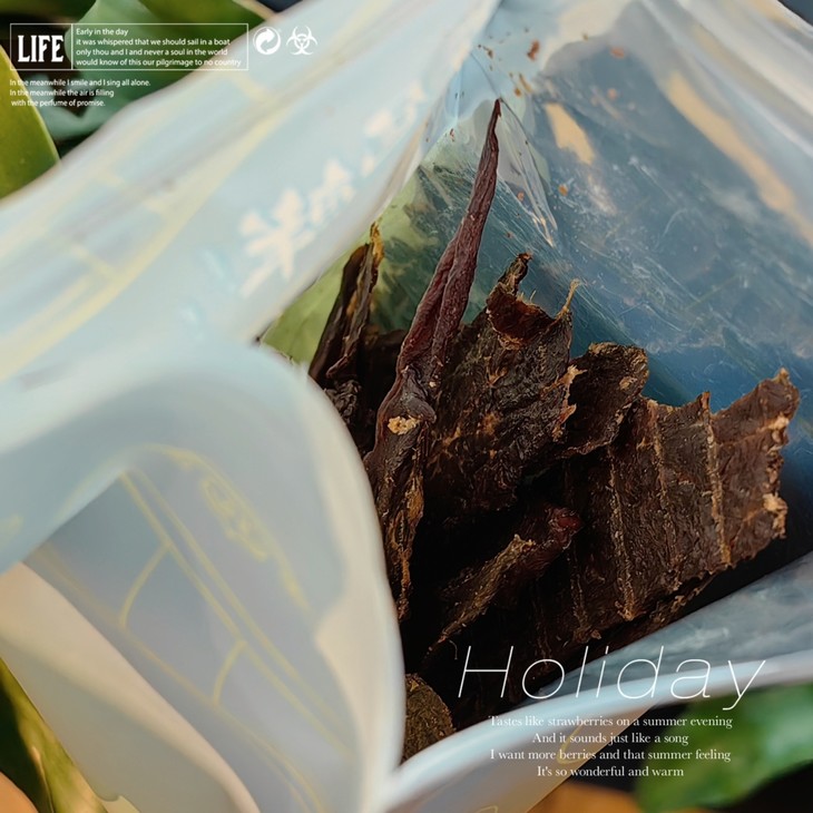 苏尼鲜牛肉干包装也很朴实,但肉肉是很可的,而且坚持原味不辣,片状设计也使得撕扯更为方便,不易出油脏手,优雅哦!肉肉偏瘦,很适合减脂人解馋,口感鲜美且高蛋白质低脂肪!