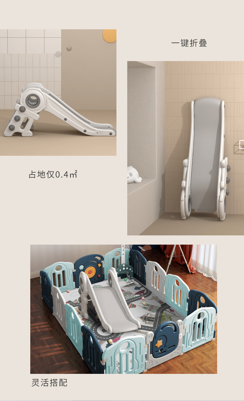 贝易大自然围栏宝宝游戏防护栏室内家用宝宝1-2-3玩具折叠滑梯家庭小型儿童乐园