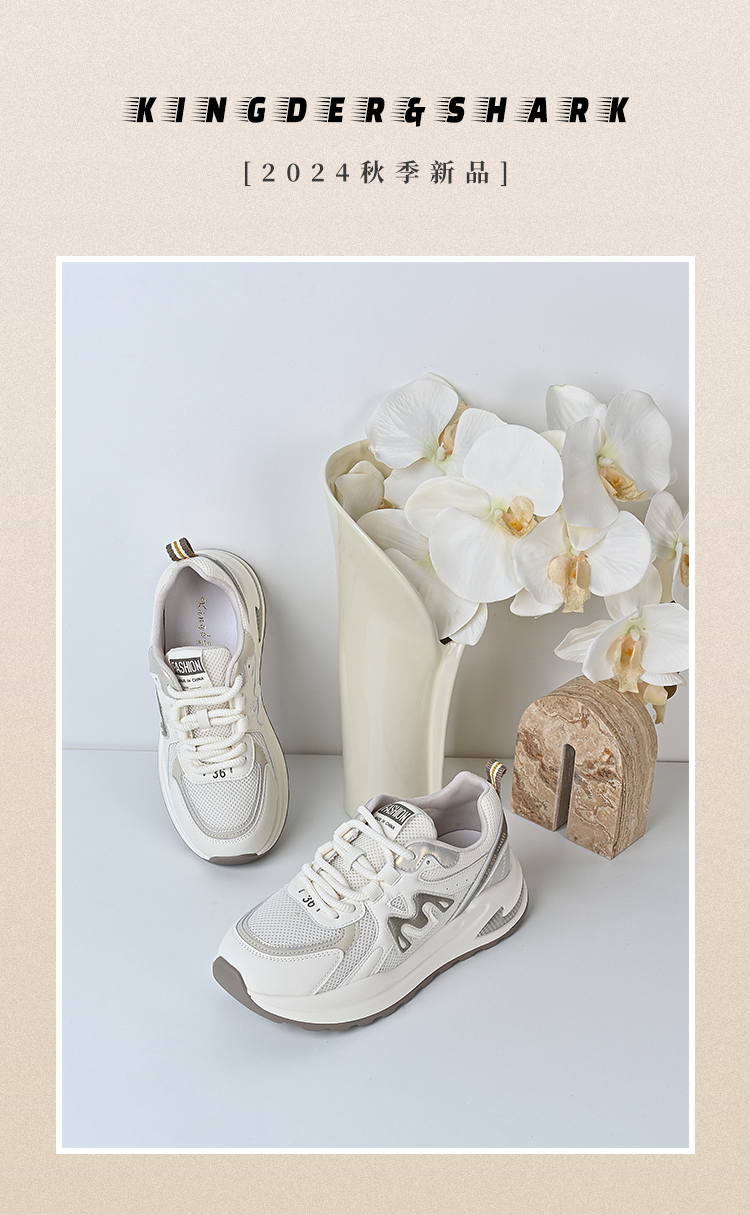 经典鲨2024年秋新款韩版网面舒适透气时尚平底跑步休闲鞋女KW219-D37101