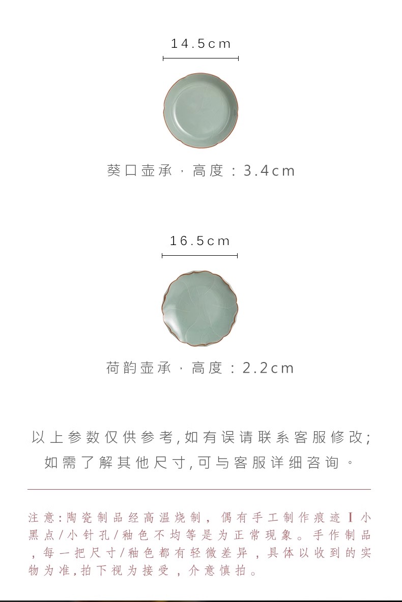 天青汝窑壶承开片可养功夫茶具壶托茶承干泡台茶盘陶瓷茶点盘壶垫