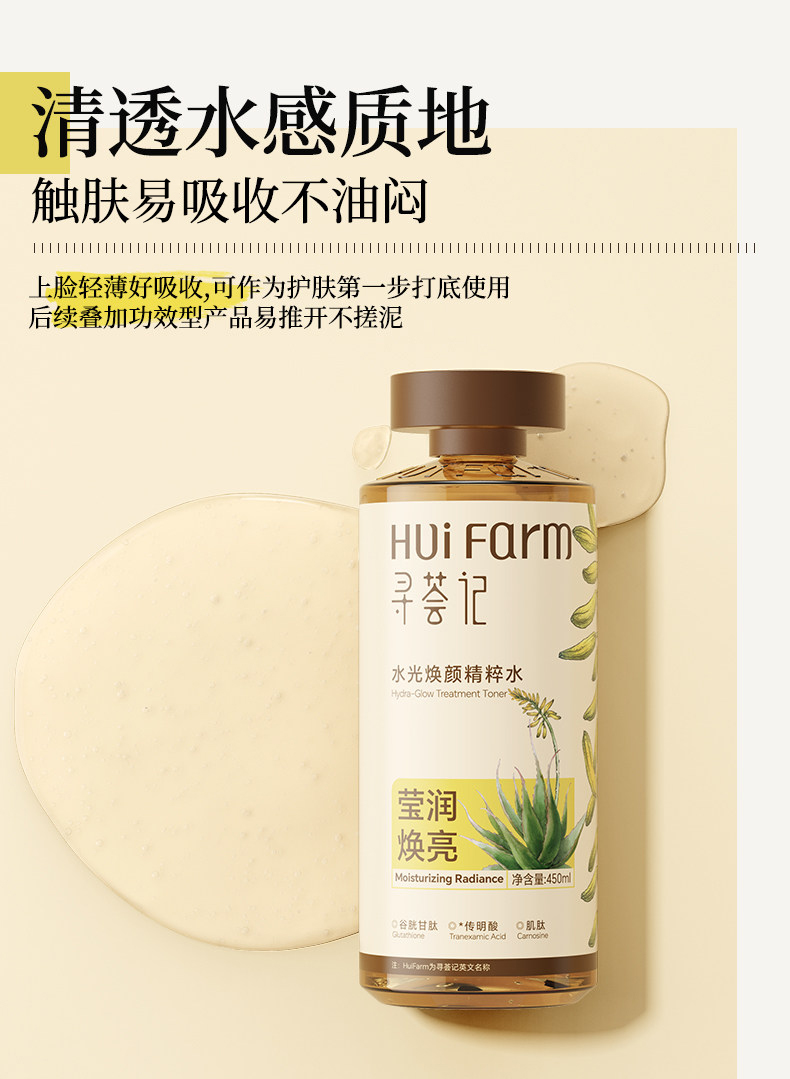 寻荟记水光焕颜精粹水450ml 去黄保湿清透润肤爽肤水补水男女护肤