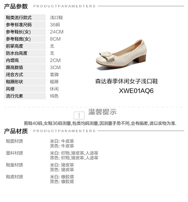 BF楼 森达时装鞋2026新款通勤职场粗跟浅口小皮鞋XWE01吊牌价899活动价499