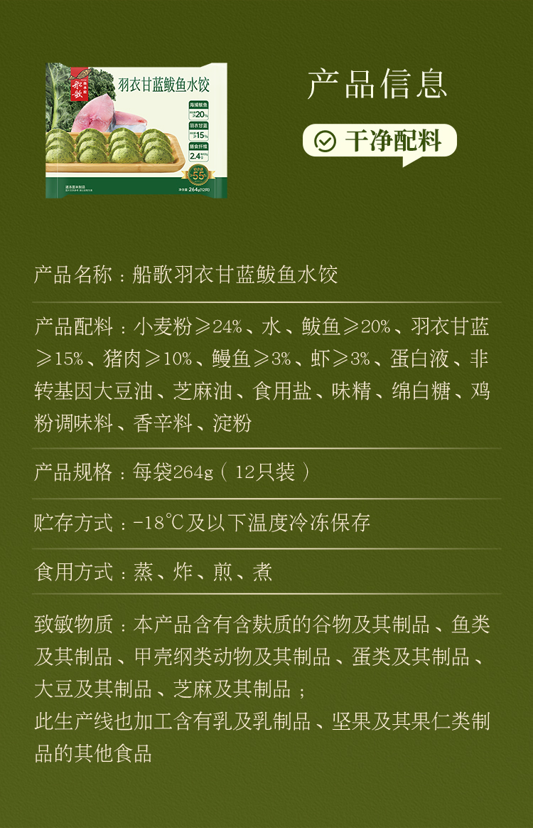 船歌鱼水饺羽衣甘蓝鲅鱼水饺冷冻早餐营养手工包制