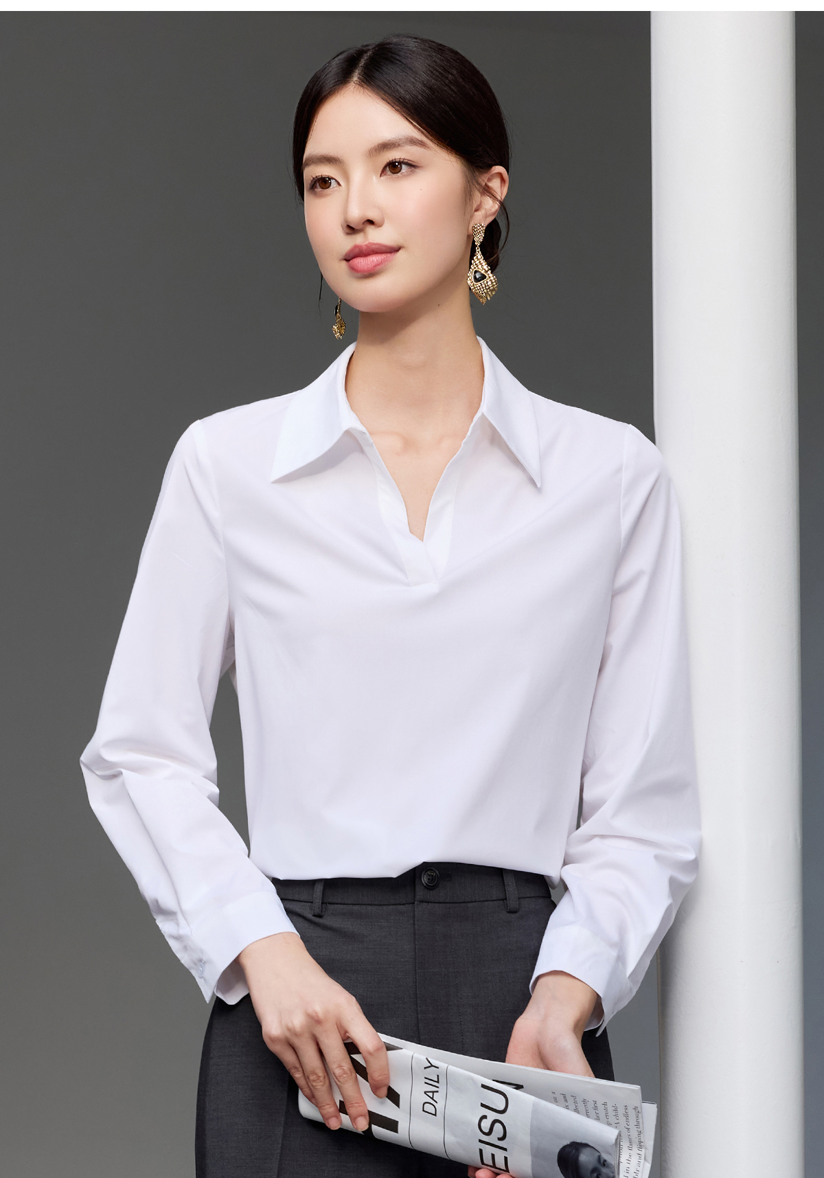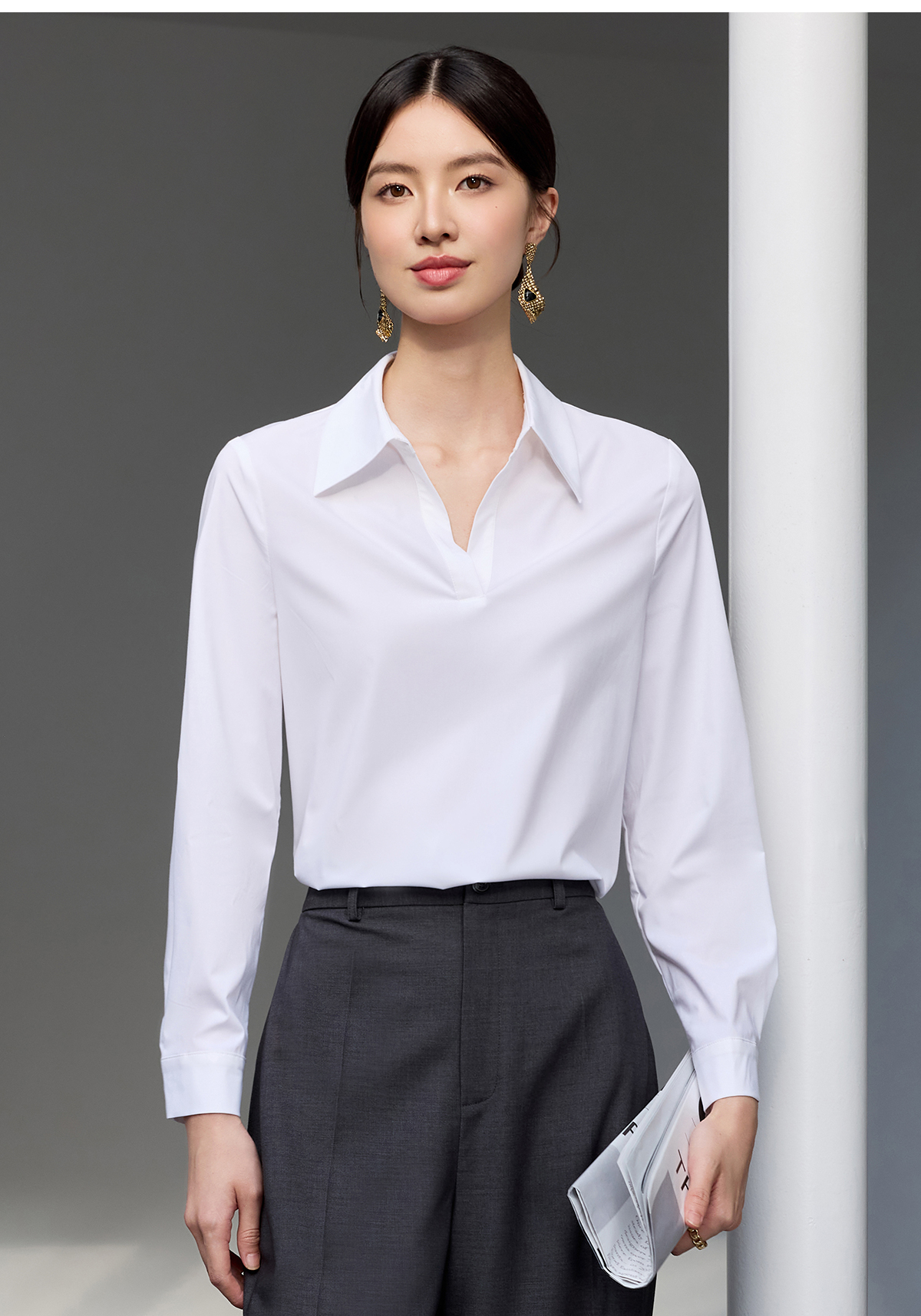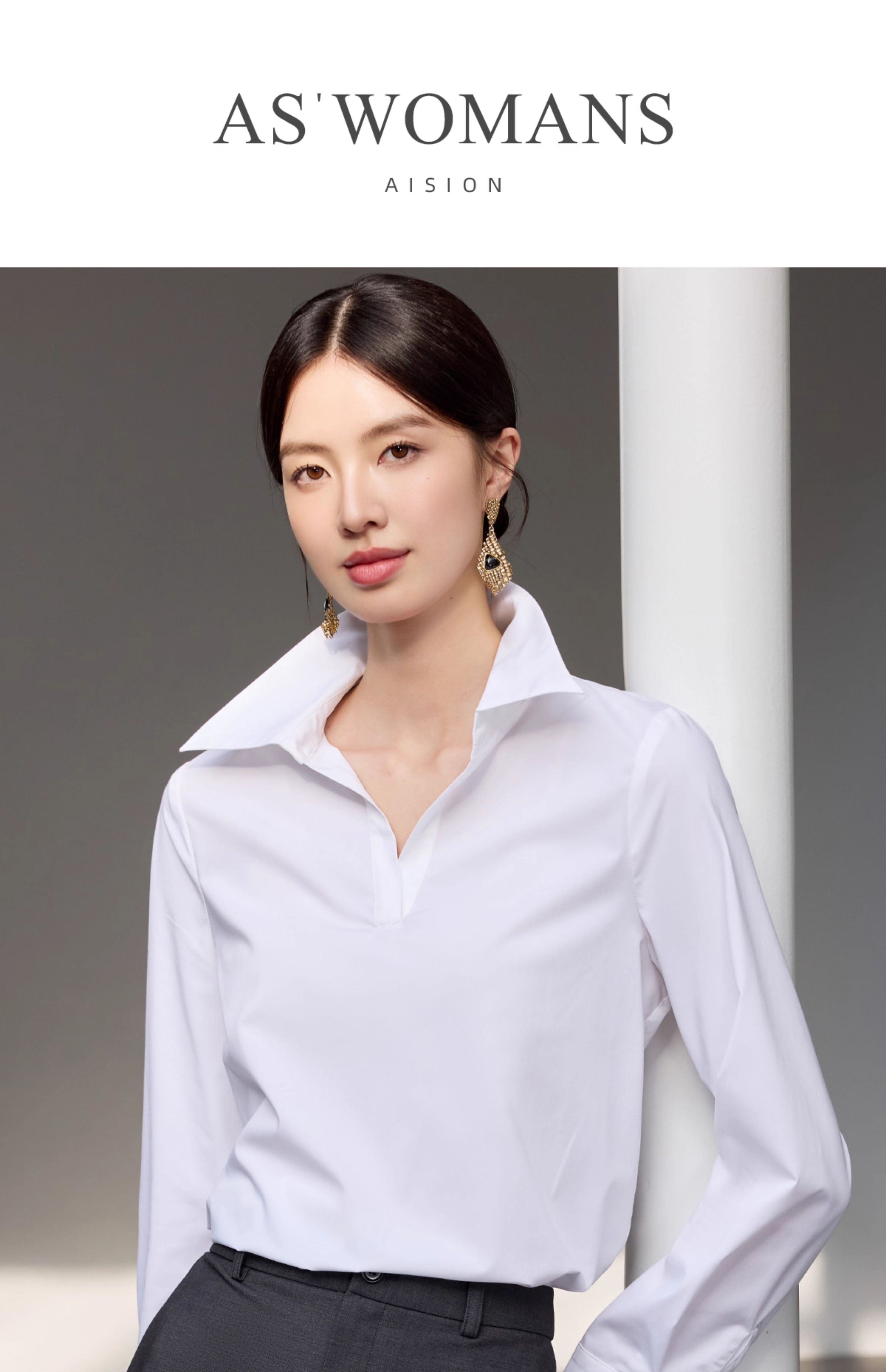 艾尚臣2025新款白色V领气质显瘦正式场合衬衫时尚减龄长袖衬衣