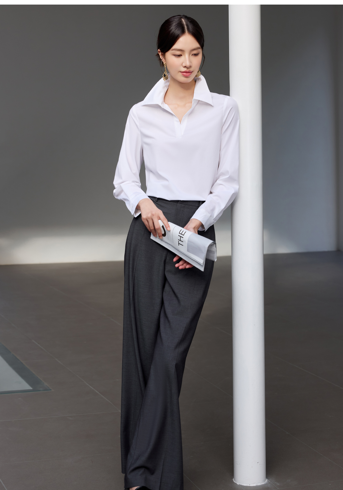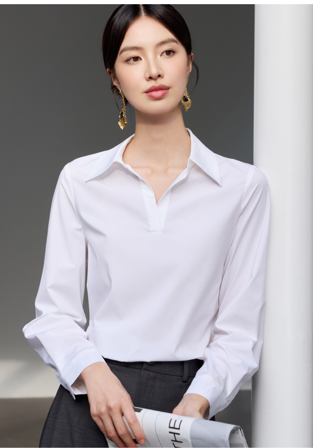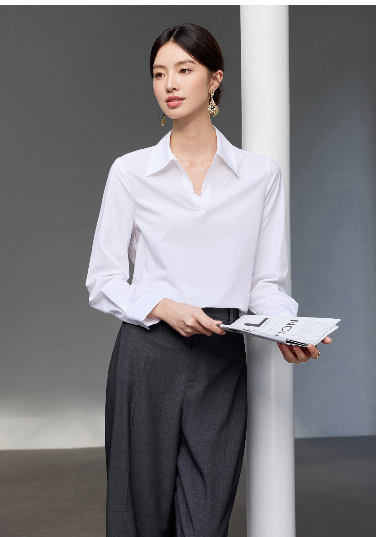 艾尚臣2025新款白色V领气质显瘦正式场合衬衫时尚减龄长袖衬衣