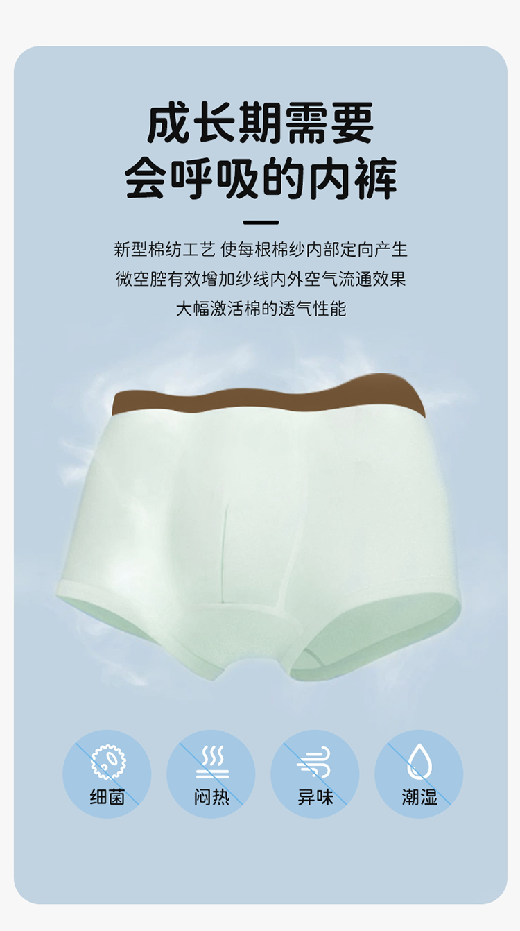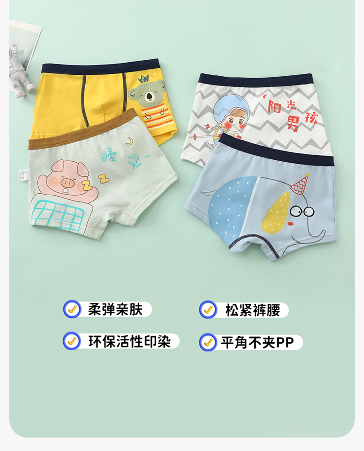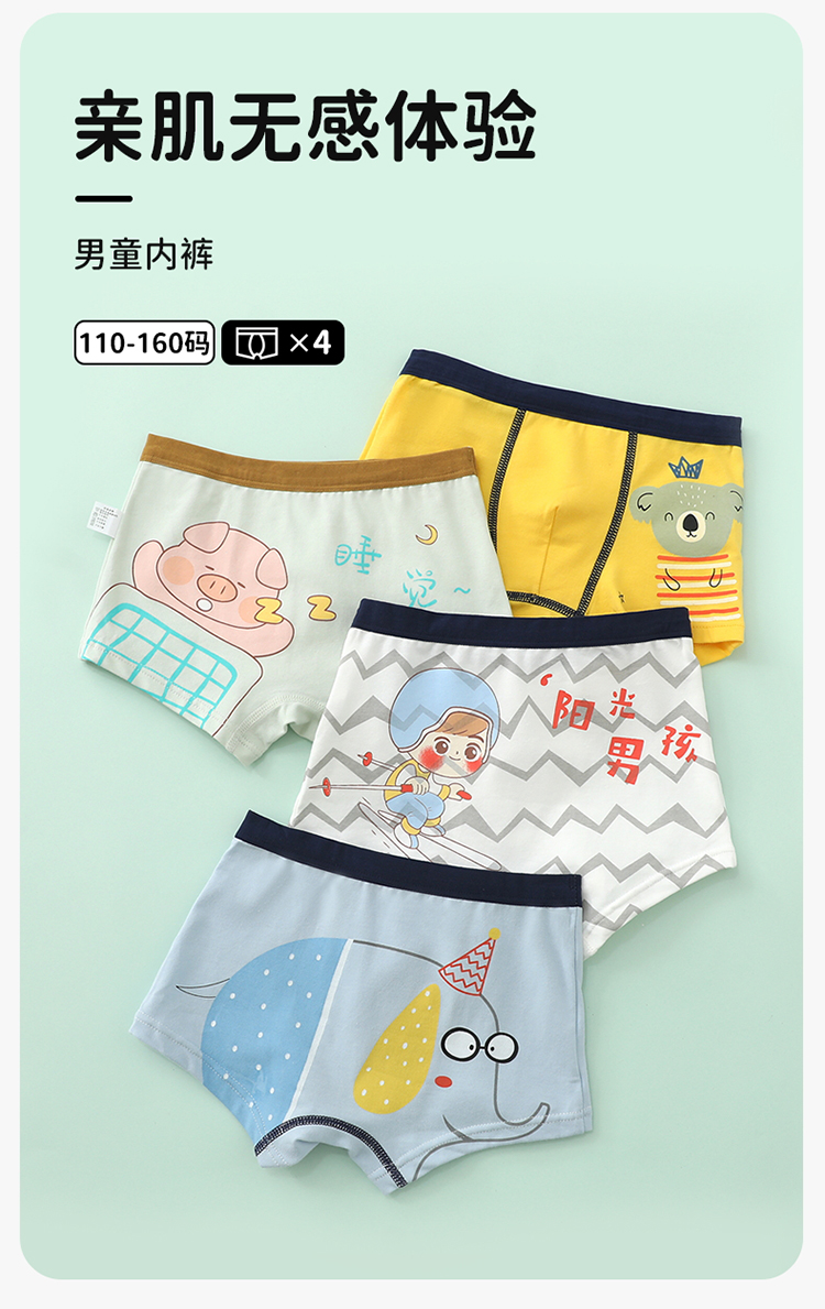 贝贝怡【4条装】儿童成长期内裤棉质舒适男童内裤平角中大童青少年(4件装)