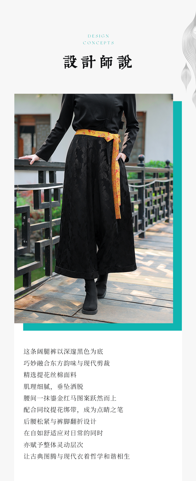 【2026春节款-现货】墨绽金羁民族风阔腿裤