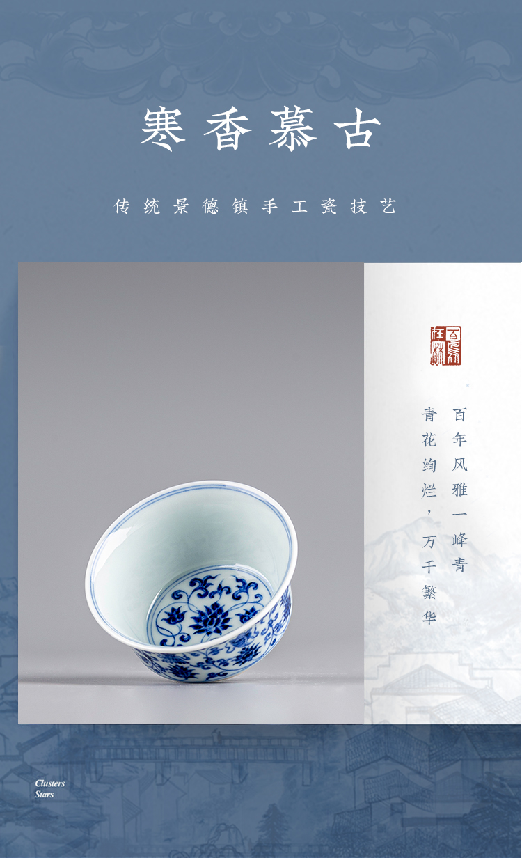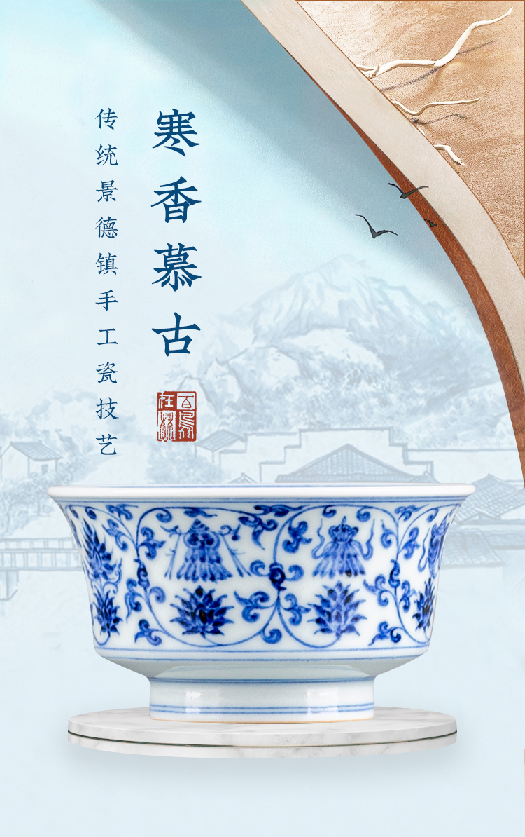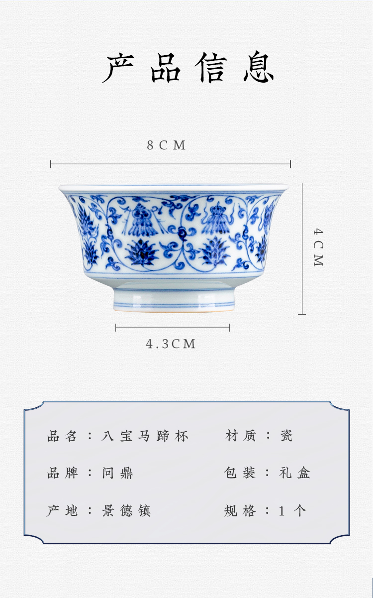 寒香慕古明青花八宝马蹄杯