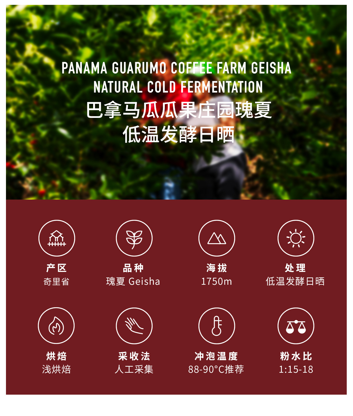 【甄选白金】泰摩巴拿马瓜瓜果庄园低温发酵日晒瑰夏咖啡豆100g