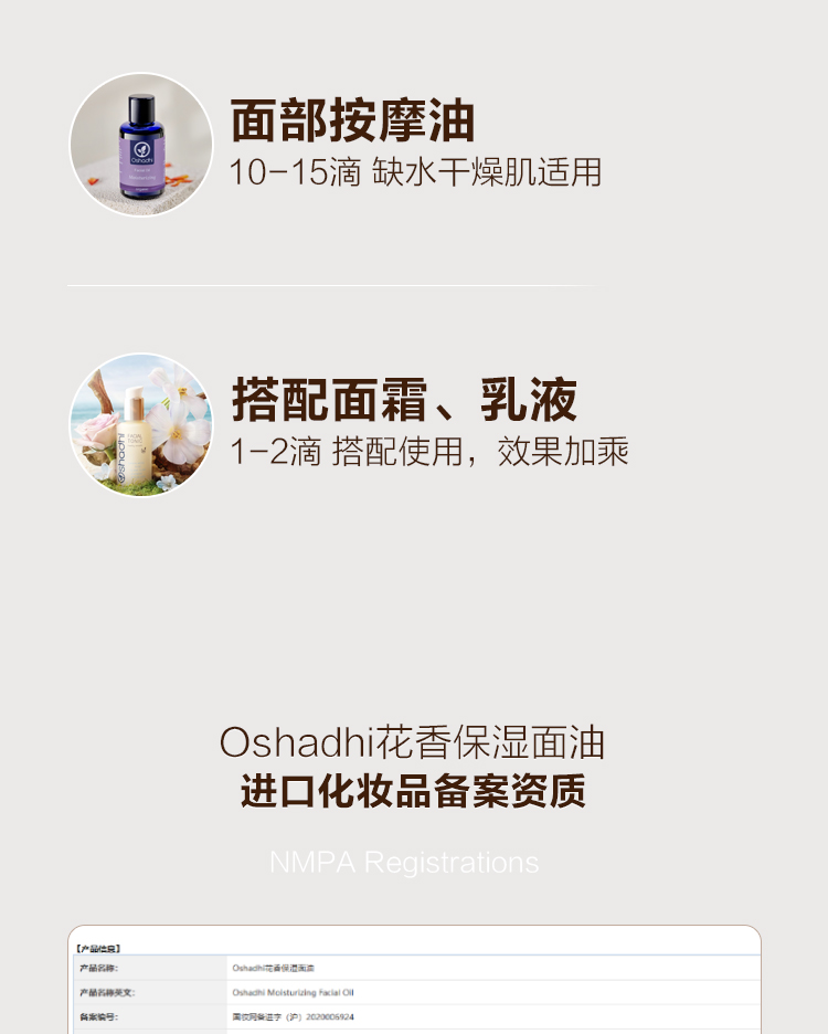 德国O家花香保湿面油30ml 面部按摩油精华 补水保湿