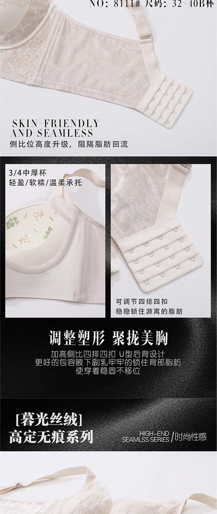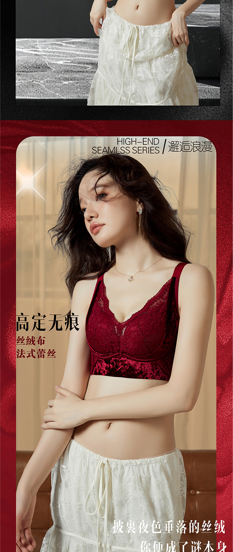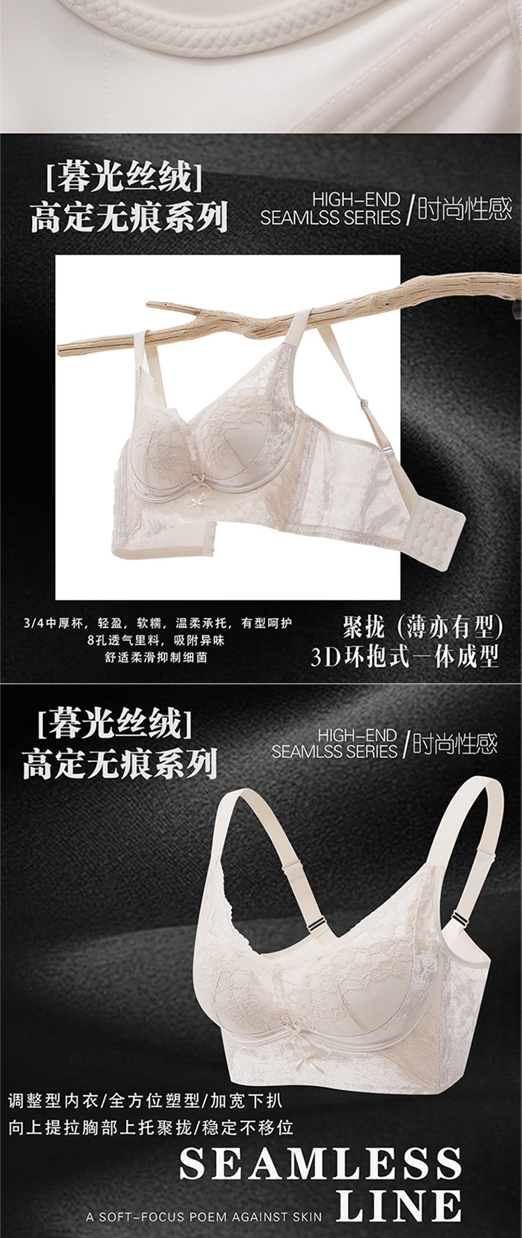 【高奢暮光❗️丝绒调整型内衣】0.01秒绒触反应,3D环抱式一体成型,轻盈软糯温柔承托,有型呵护8孔透气里料,吸附异味,蕾丝无磁无钢圈中厚小胸聚拢上托文胸罩QQ