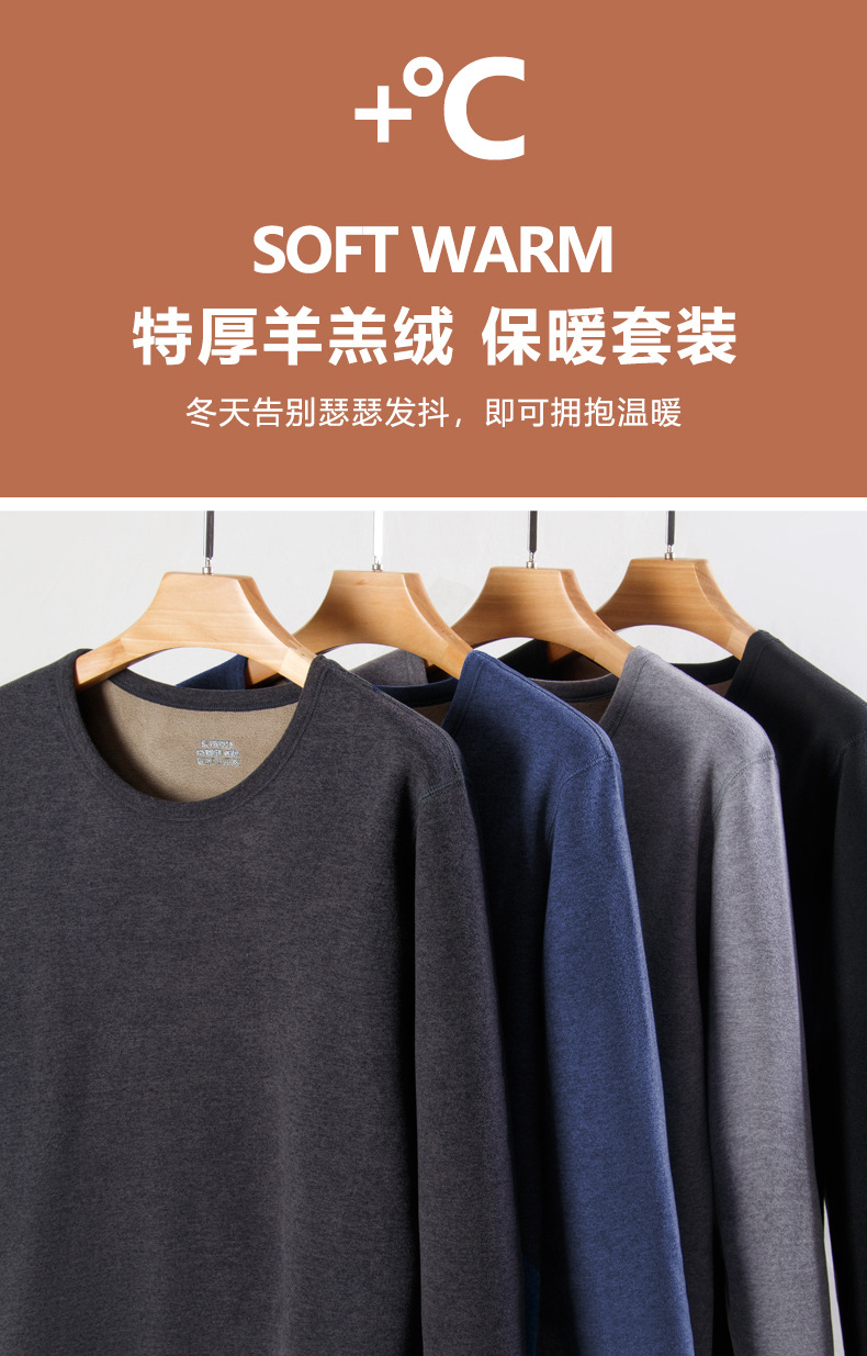 【一套过冬❗️3倍巨厚羊羔绒套装】快速聚热,穿上即暖,蓄热御寒!男士加绒内衣特厚中老年纯色保暖打底圆领睡衣睡裤家居服