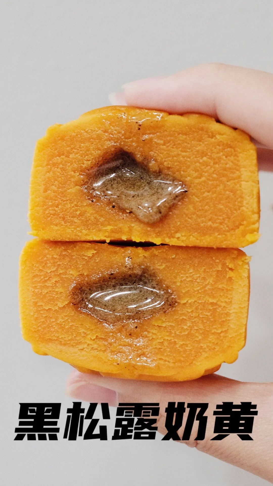■黑松露奶黄“餐桌上的黑钻石”黑松露完美加入。咬一口,绵软醇厚的咸蛋黄风味的“皮”里裹着浓香馥郁的高贵黑松露酱,在舌尖交缠。