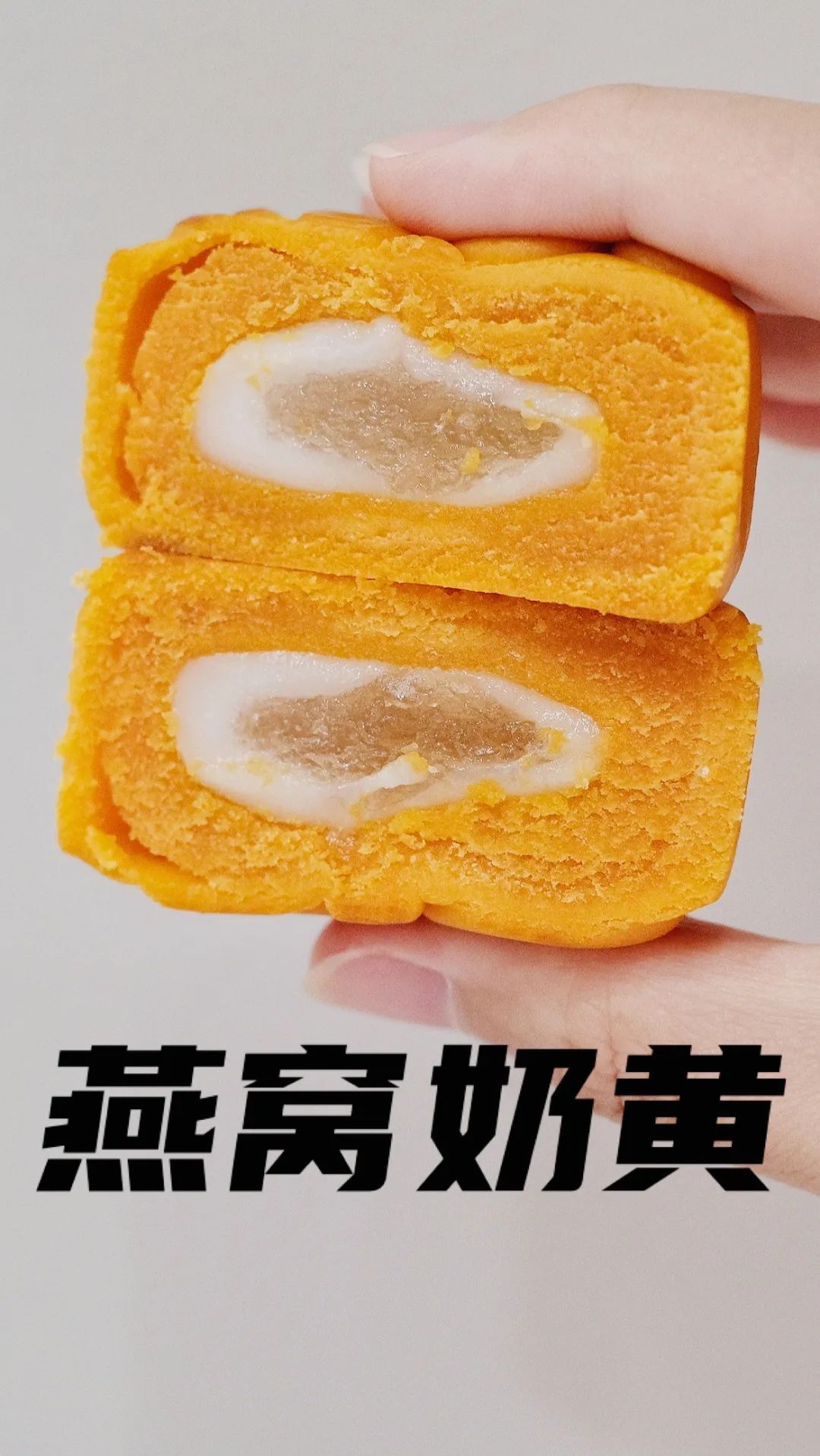 ■燕窝奶黄专为爱美的女士而设。严选矜贵的燕窝,伴入充满浓郁咸蛋黄香气的流心奶黄,尽收于金黄松软的月饼皮内。