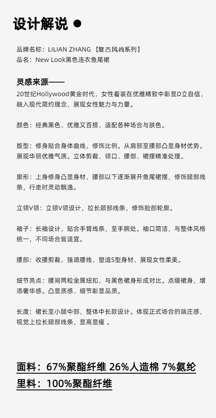 E系列-定制 ——“复古风尚”——New Look——鱼尾黑色连衣裙 2401220