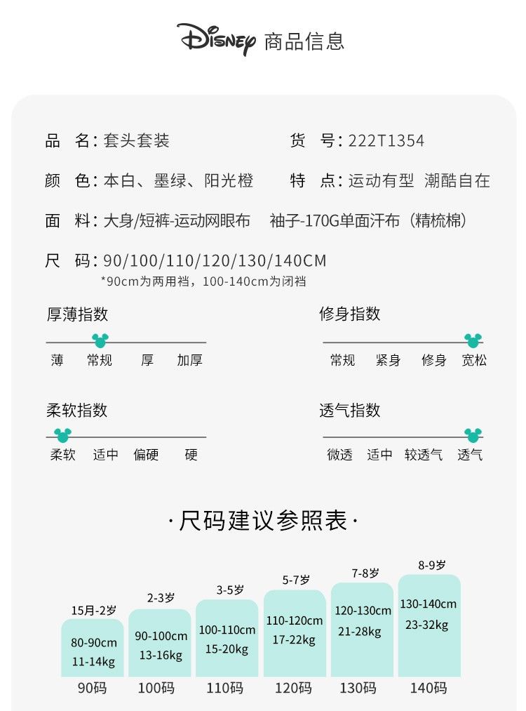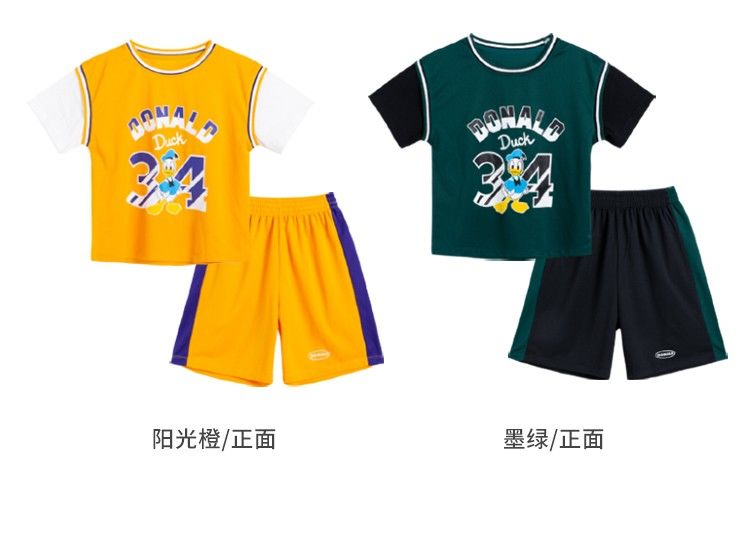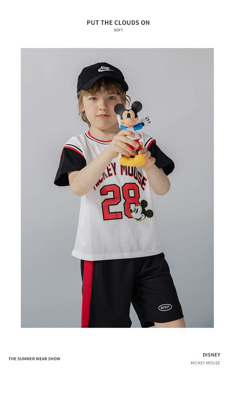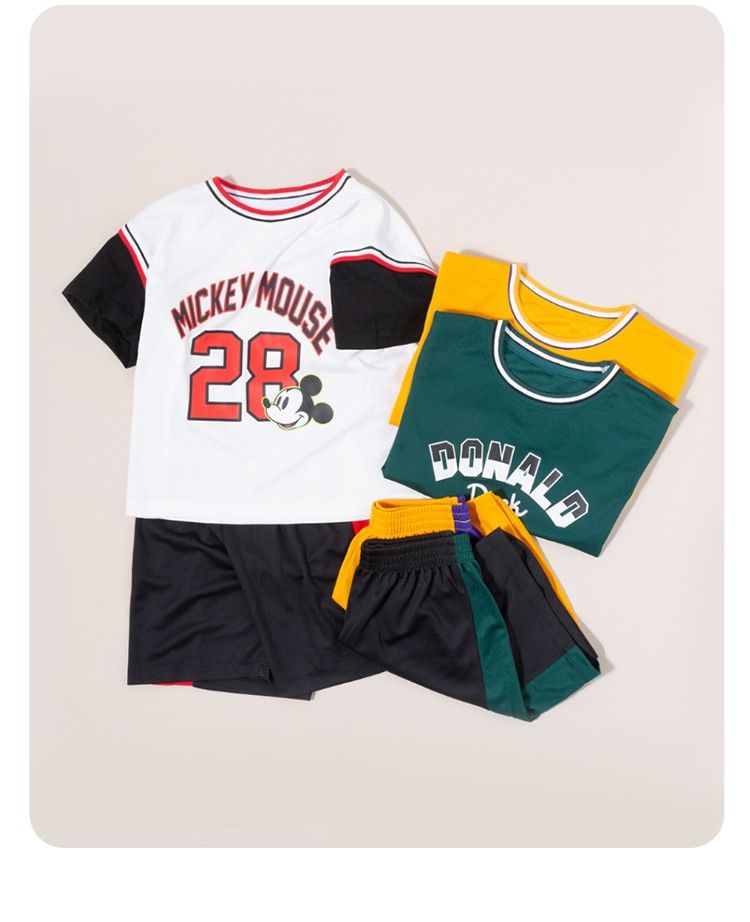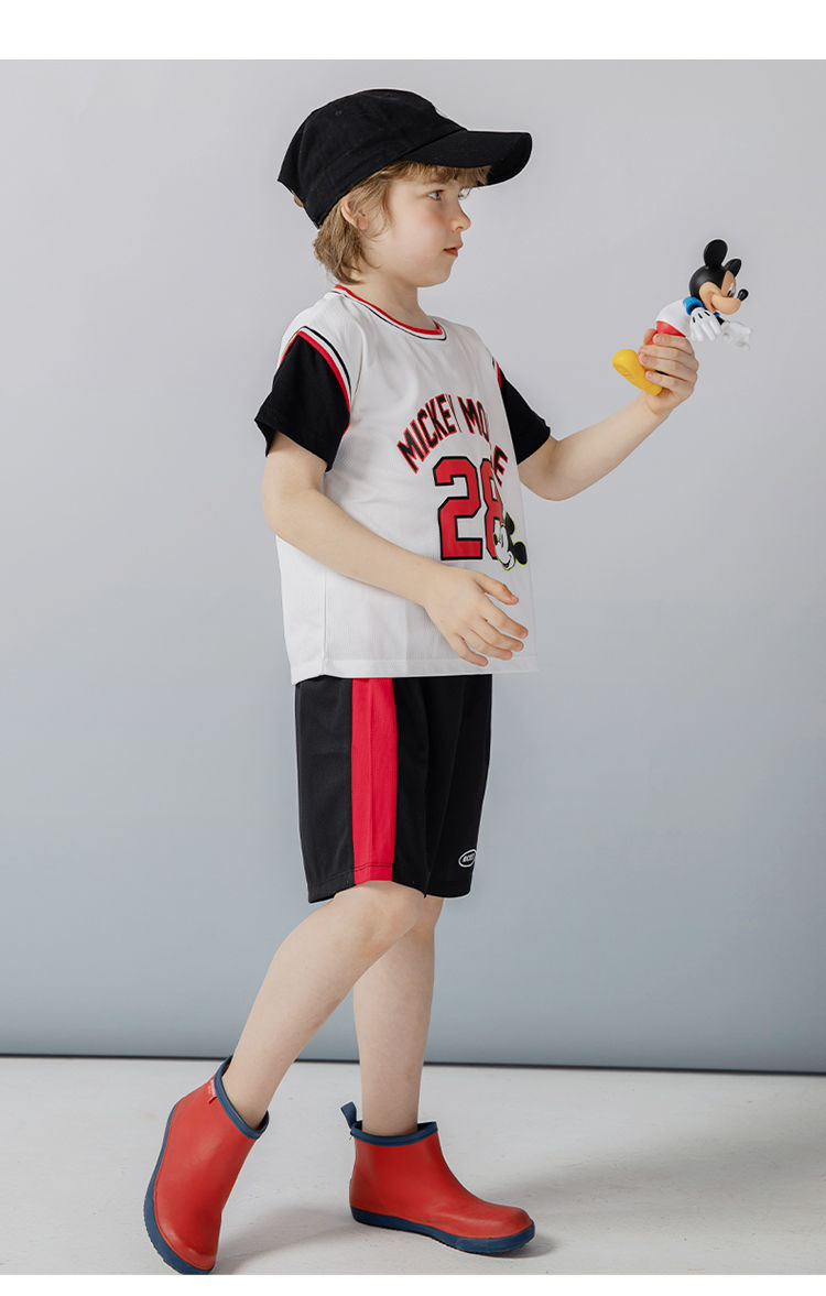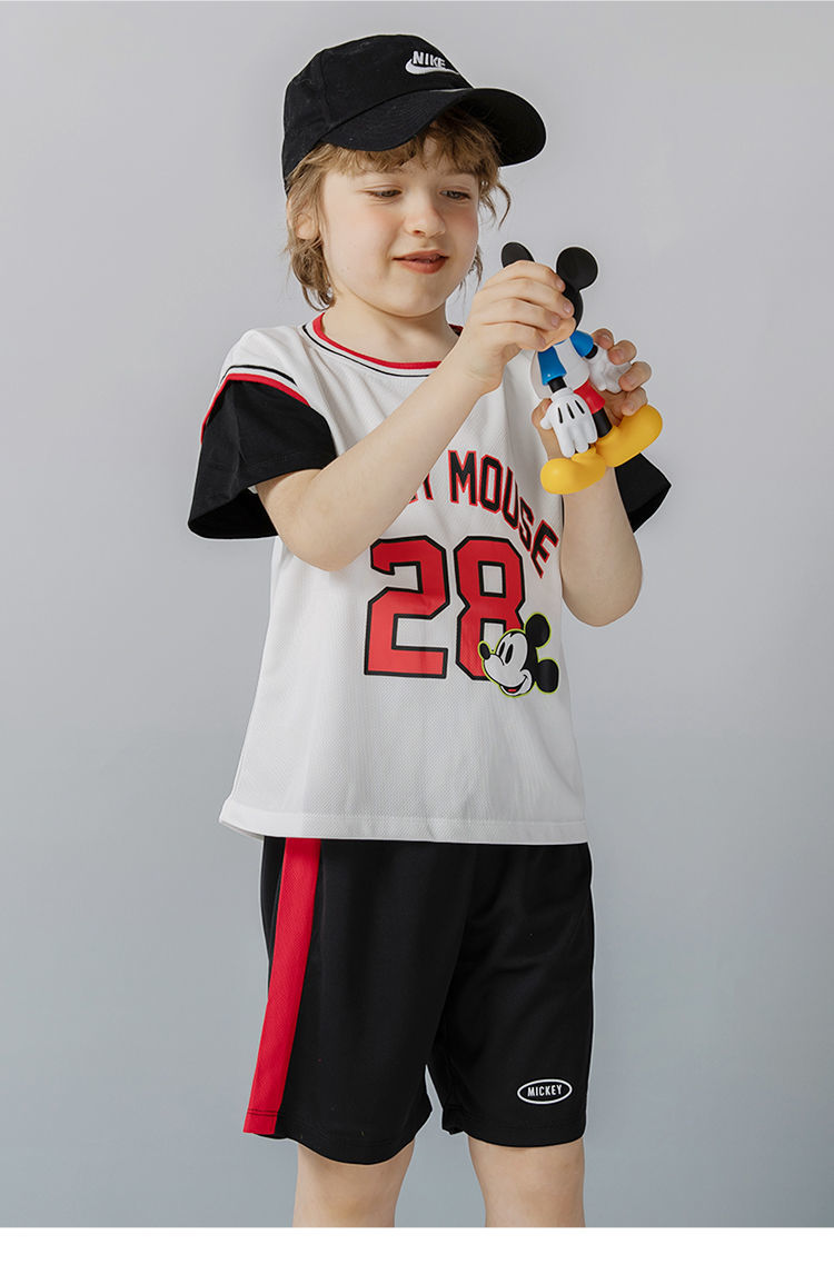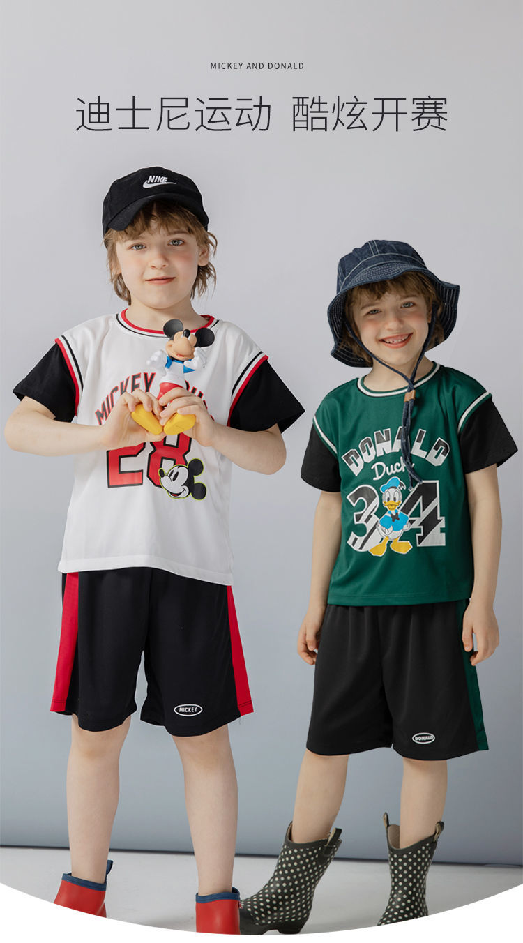 迪士尼童装 男童夏季套装儿童短袖运动服男孩潮酷篮球服2件套222T1354