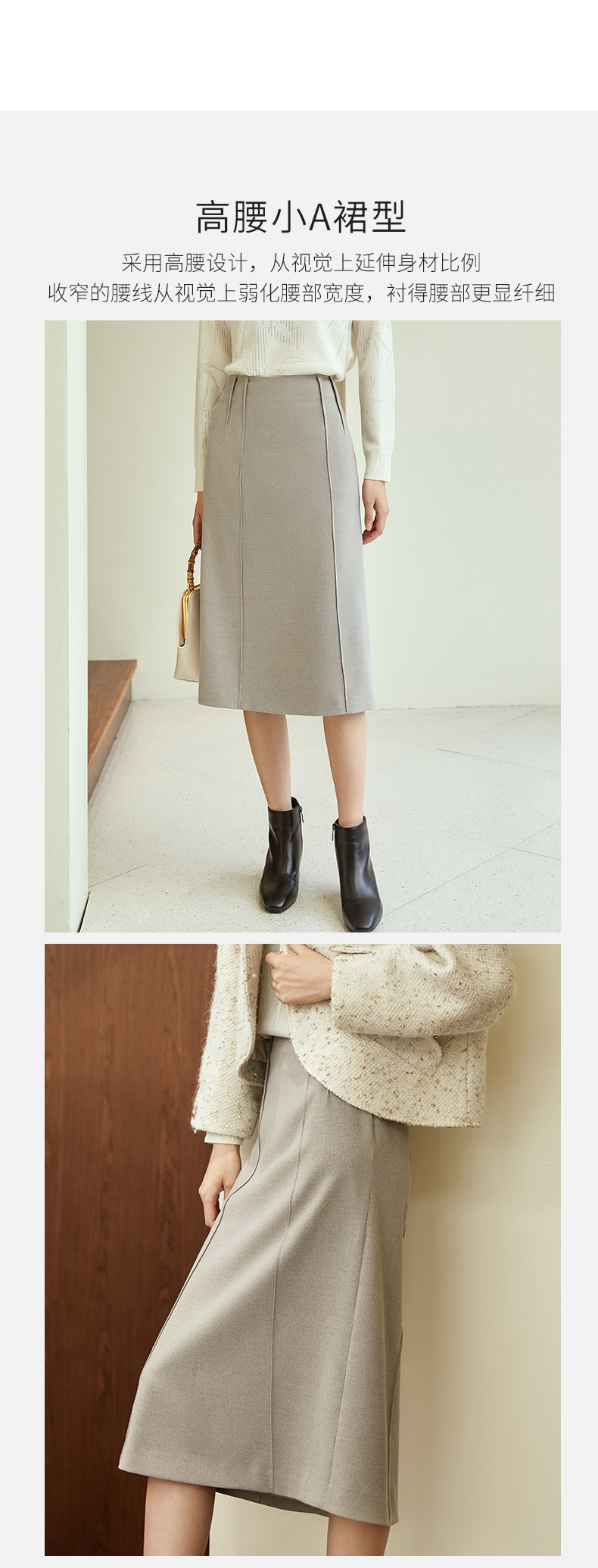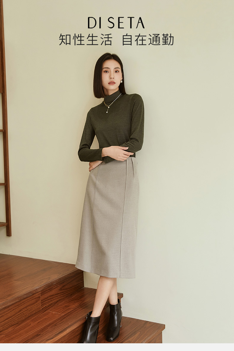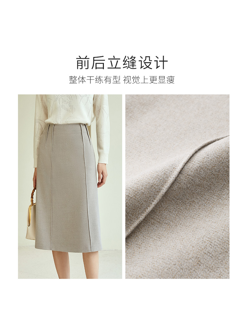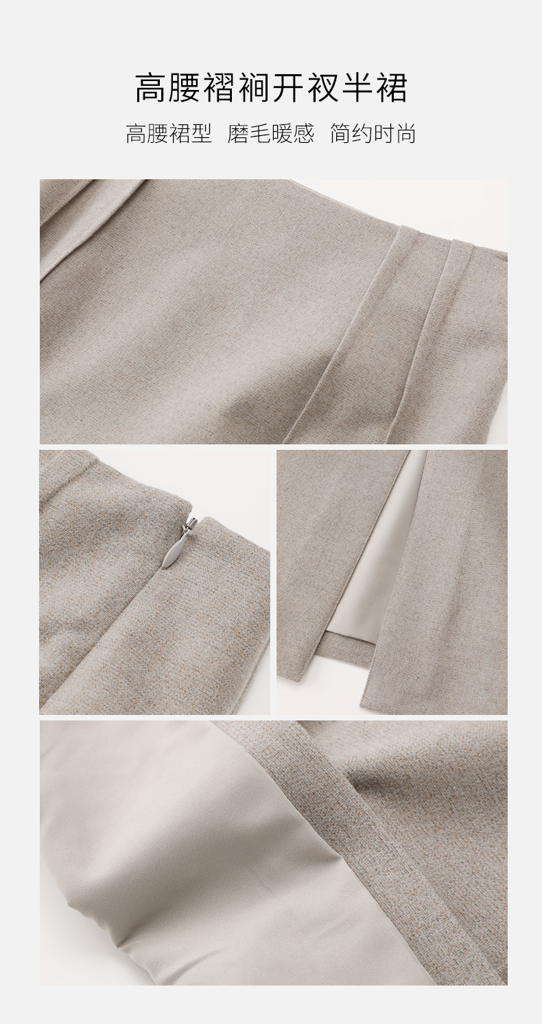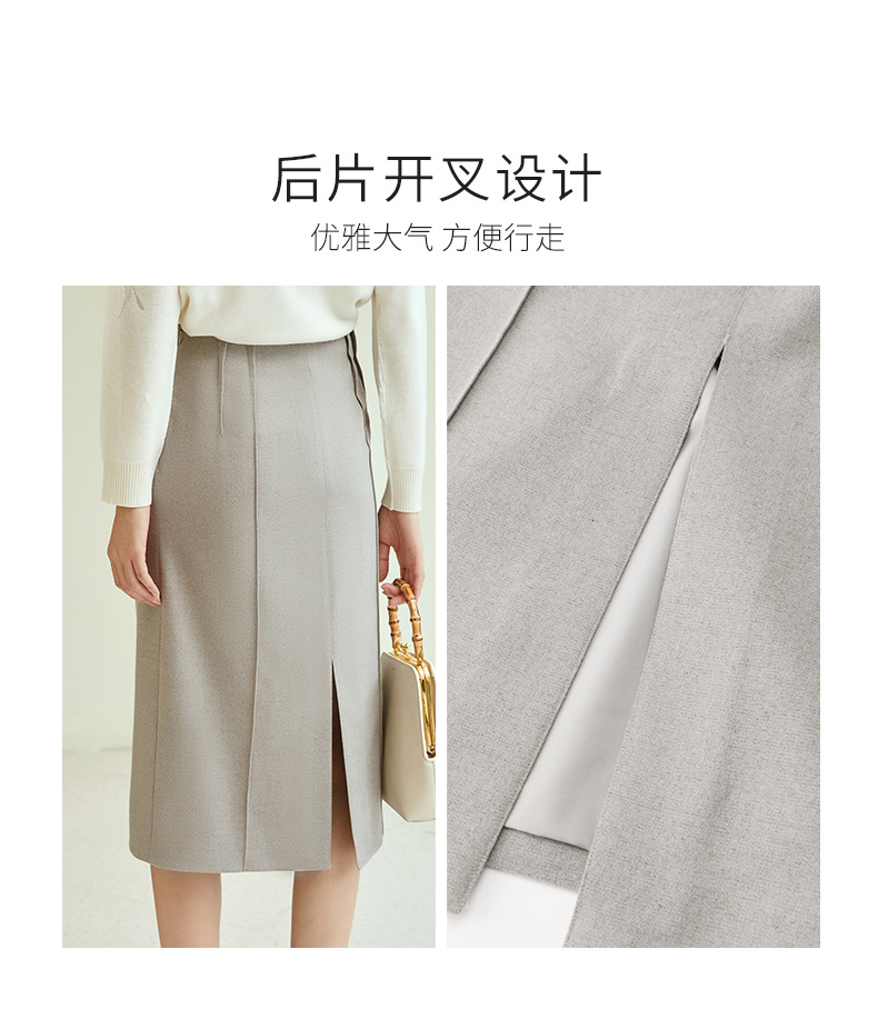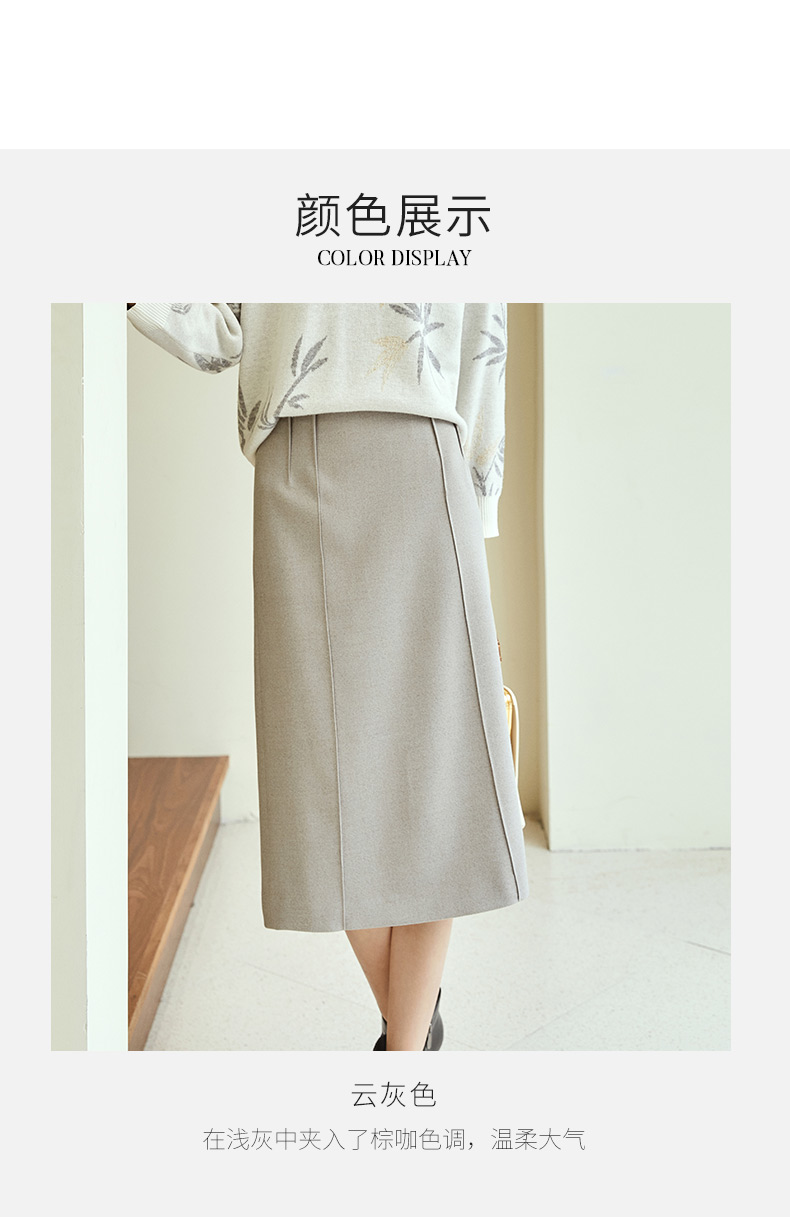 玳莎纯色通勤高腰半身裙秋冬季新款显瘦开叉设计感中长款A字裙 DD34304